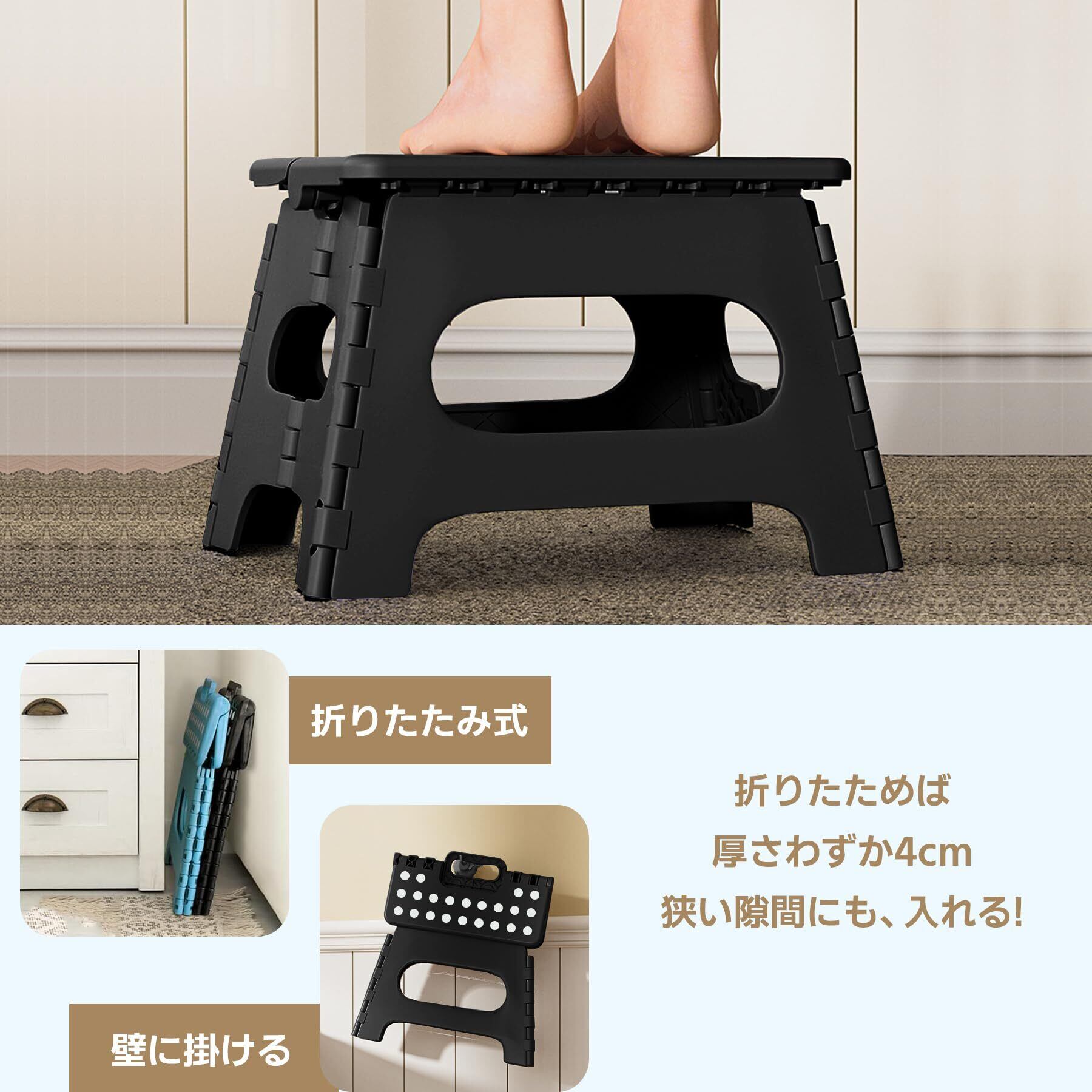 HOSUR 踏み台 折りたたみ椅子【たたむと4cm!超薄収納】ステップ 耐荷重100kg 高さ27×幅29×奥行22cm 脚立 スツール 洗車 釣り 折り畳みチェア アウトドア 室内 ミニ脚立 台座 収納便利 ブラック