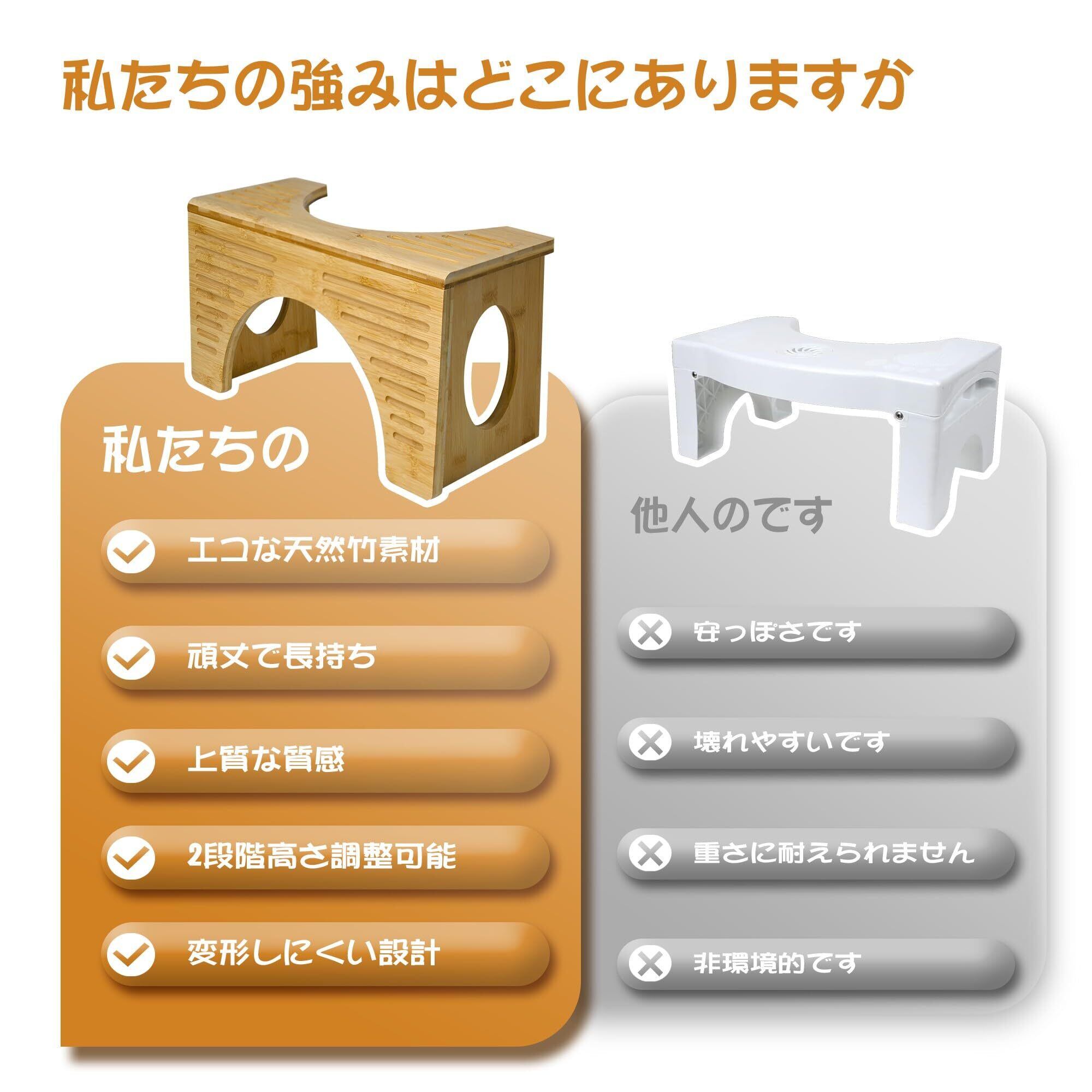 大きな森 竹製 トイレ 踏み台 子供 大人兼用 トイレステップ 2段階高さ調節 滑り止め加工 組立簡単 洗面所用 天然素材 耐荷重150kg DSL—006