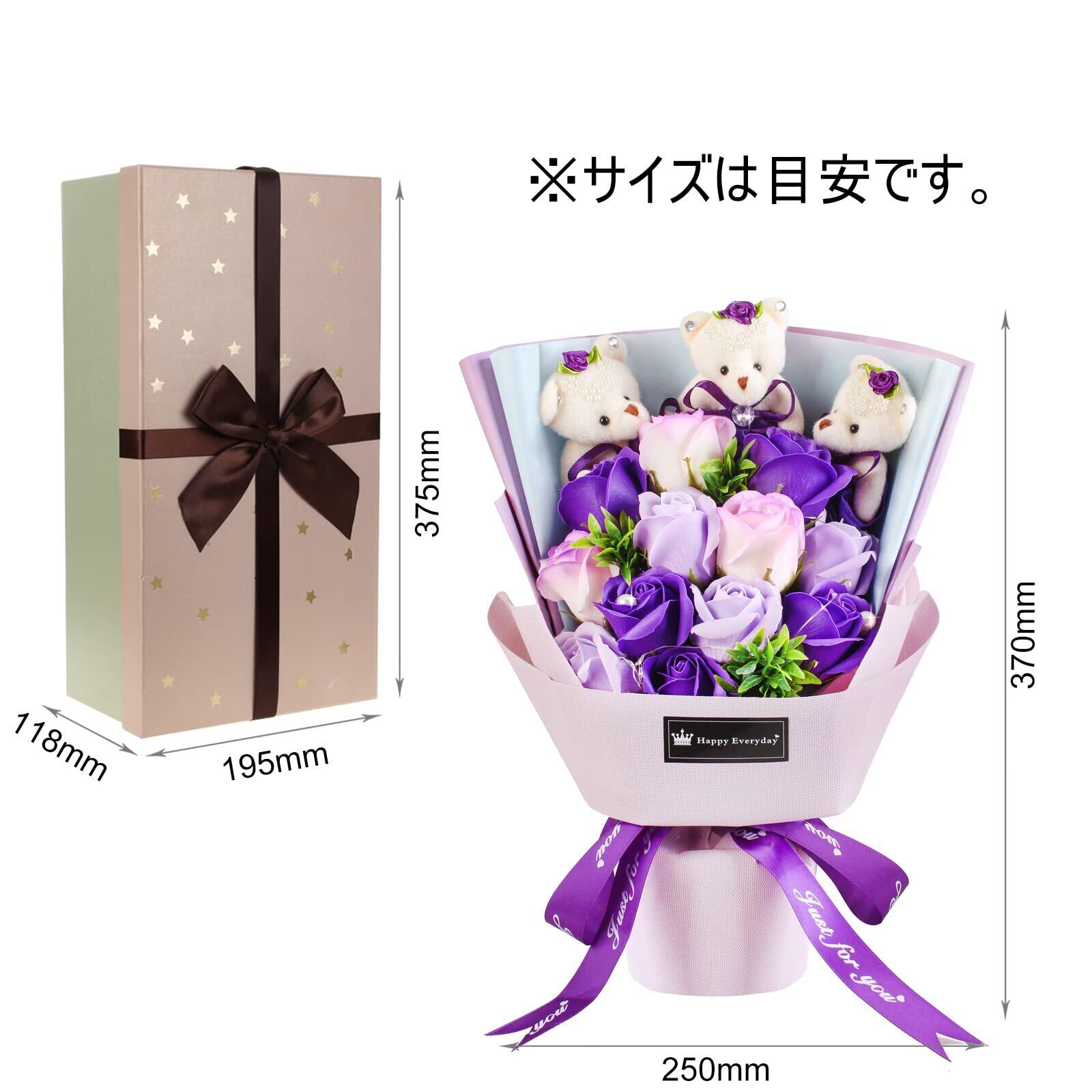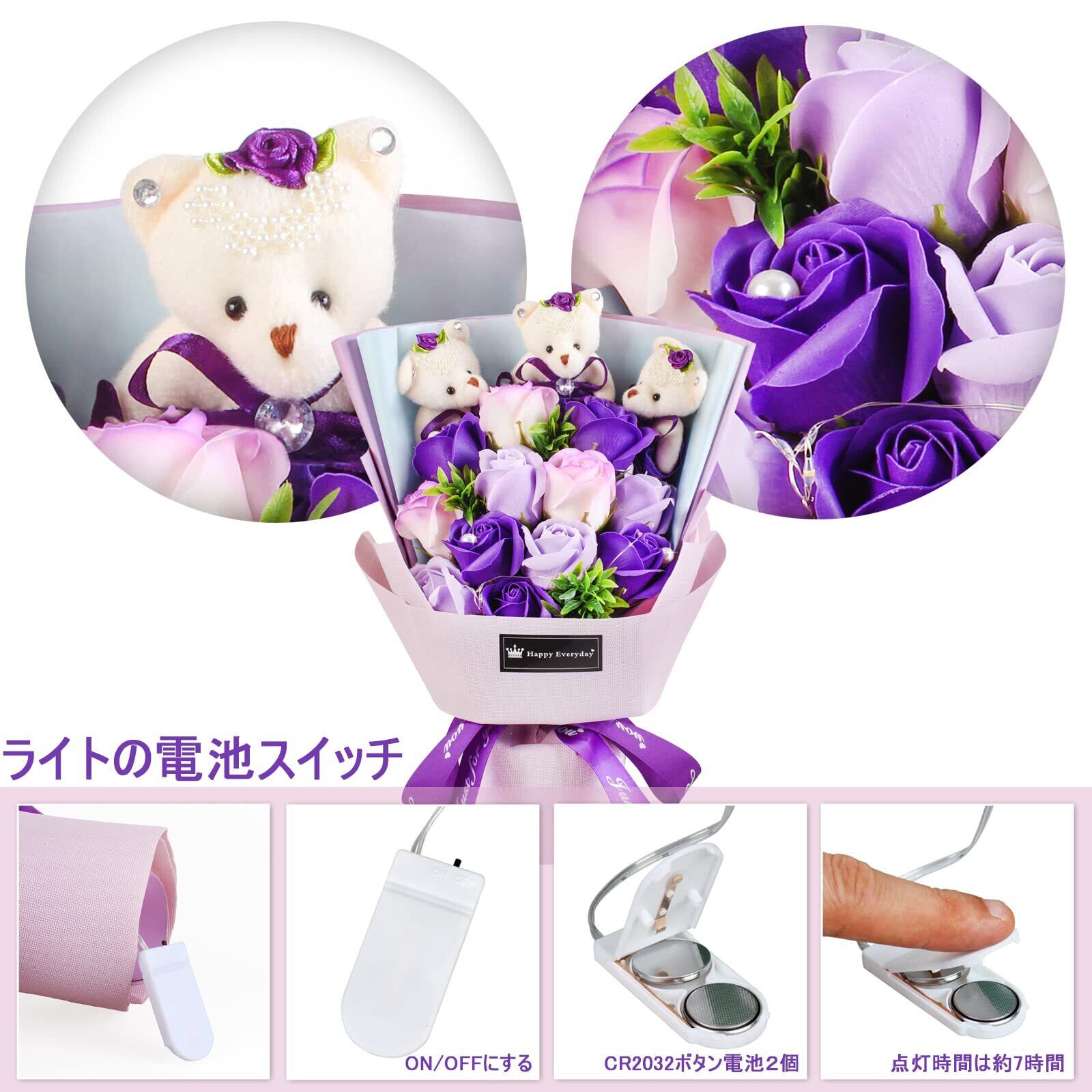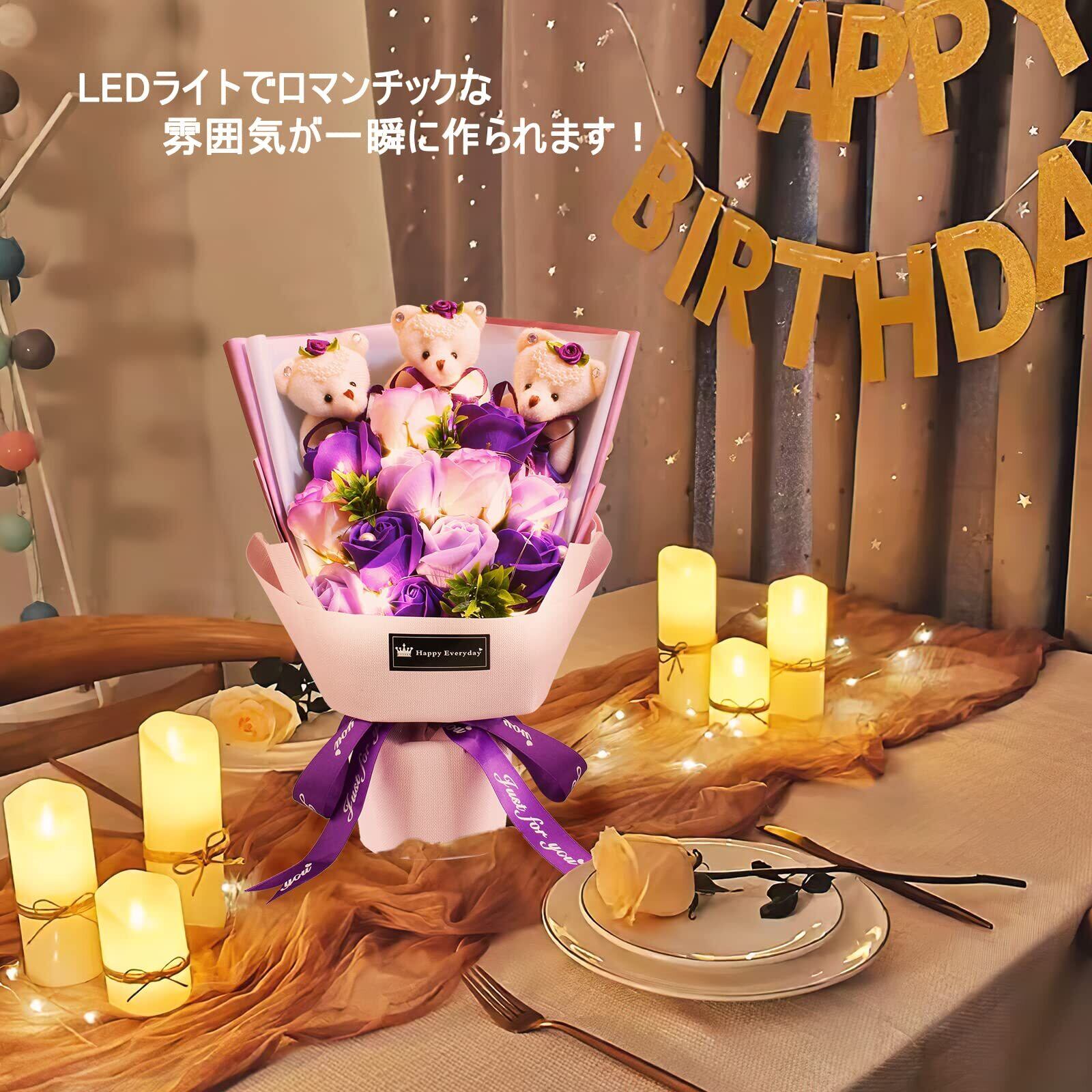 ソープフラワー 花束 ギフト くま LEDライト付き ボックス入り バレンタインデー ホワイトデー 母の日 誕生日 記念日 敬老の日 退職祝い 還暦祝い ギフト 人気 発表会 入学式 昇進 新築祝い 開店祝い 卒業祝い お見舞い プレゼント パープルバラ メッセージカード付き 2023年発売 (花束ー紫)