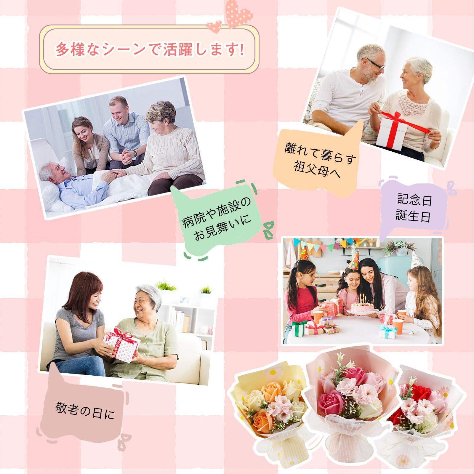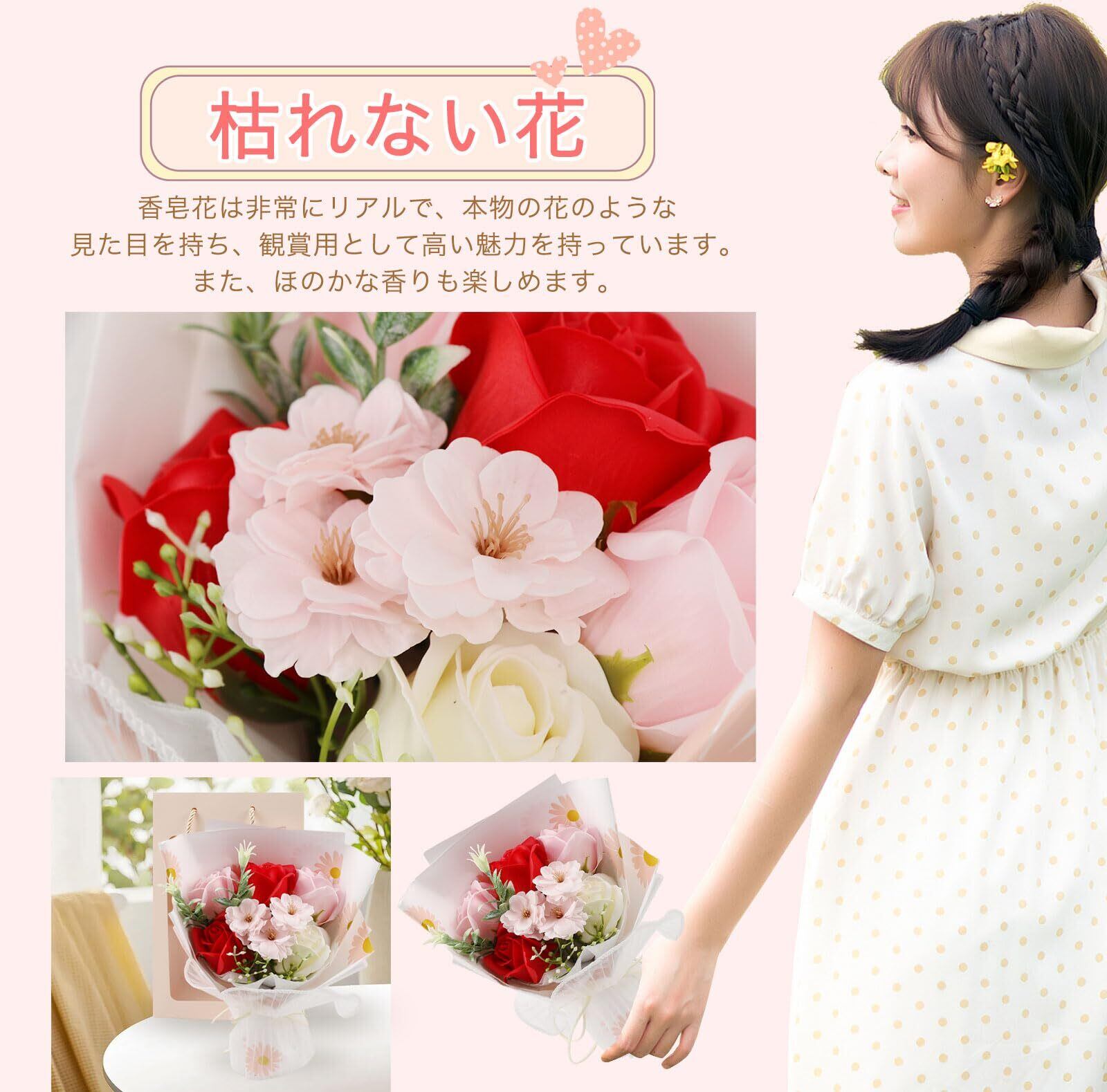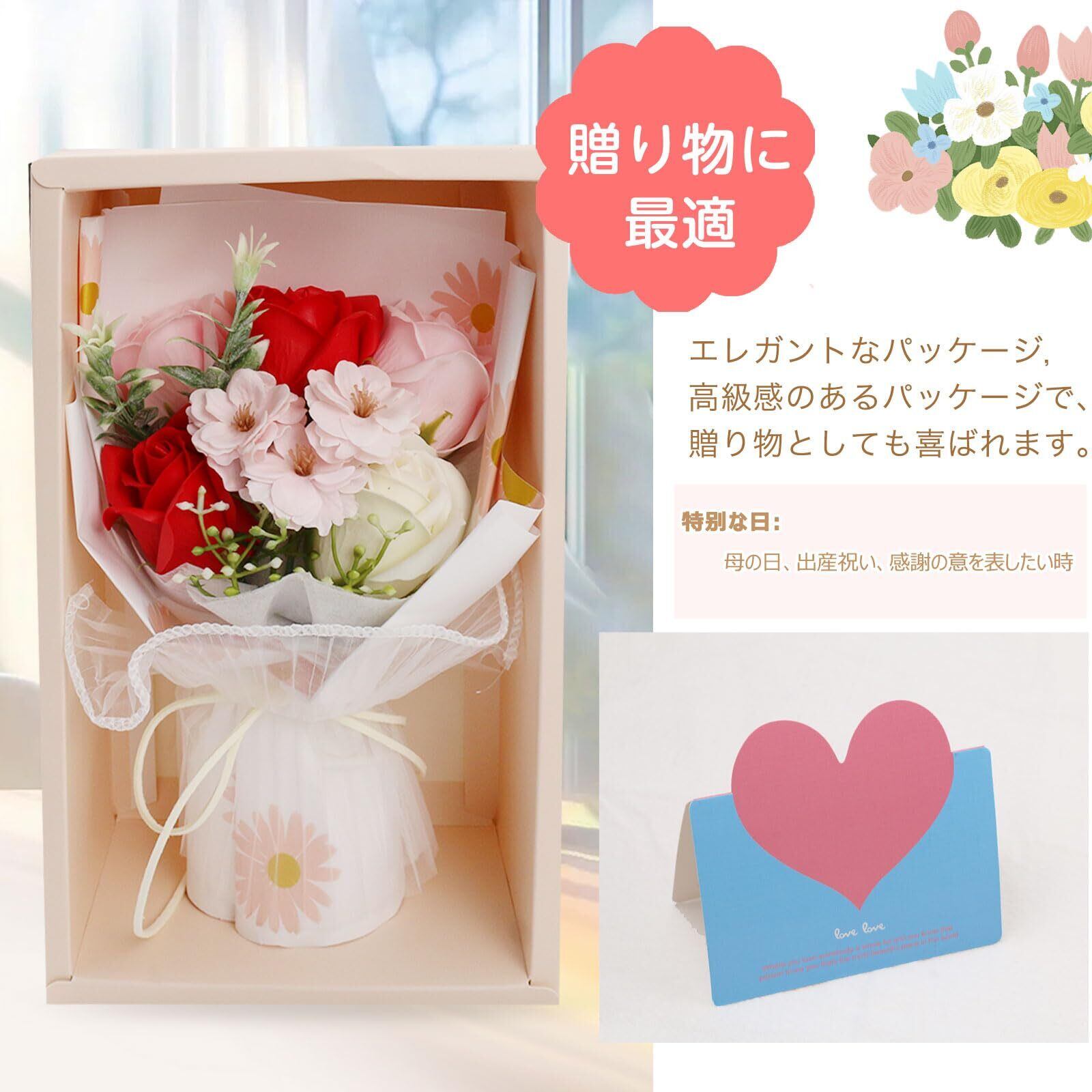 千選千品 ソープフラワー 花束 母の日 ギフト 人気 フラワーブーケ 枯れない花 石鹸花 花ギフト メッセージカード付 クリアボックス 手提げ袋 誕生日プレゼント 女性 敬老の日 送別会
