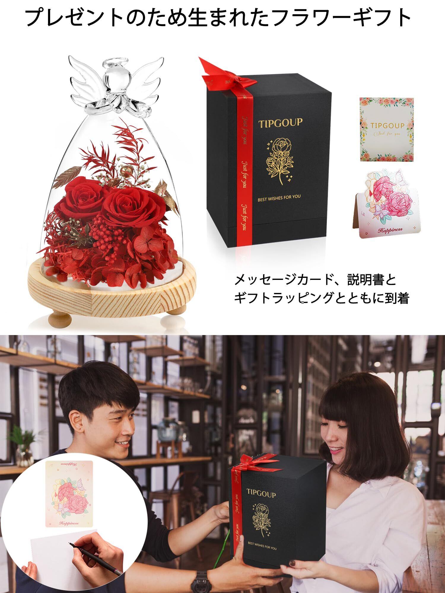 プリザーブドフラワー 誕生日プレゼント 女性 大サイズエンジェルのガラスドーム 枯れない花 バラ レッド 花 ギフト 人気 還暦祝い 敬老の日 退職祝い 母の日 ホワイトデー 2輪薔薇 お悔やみ 記念日 ボックス付き