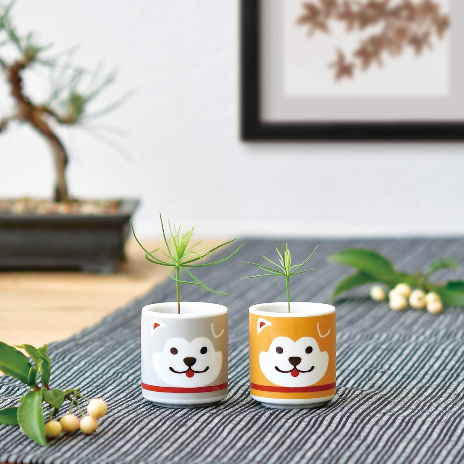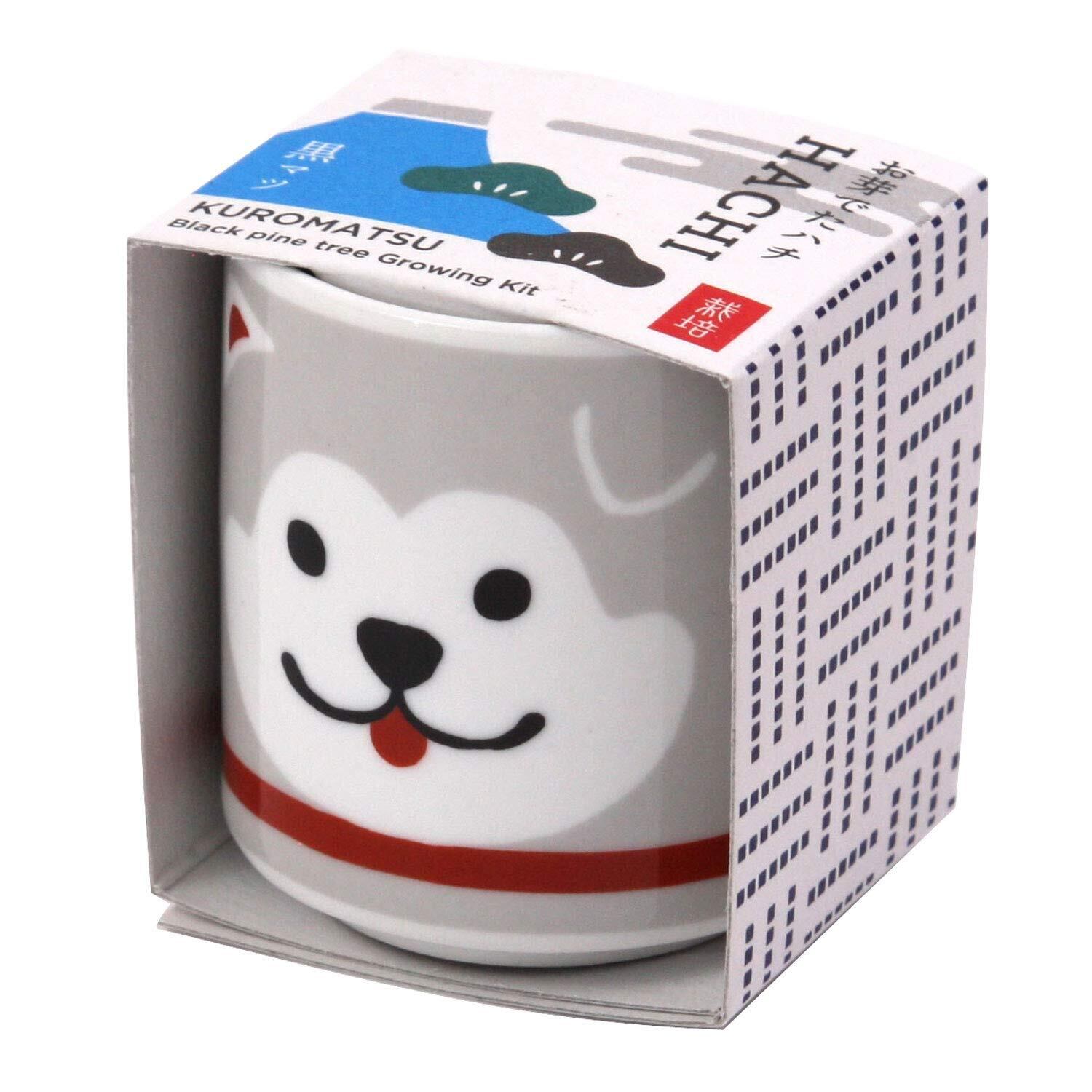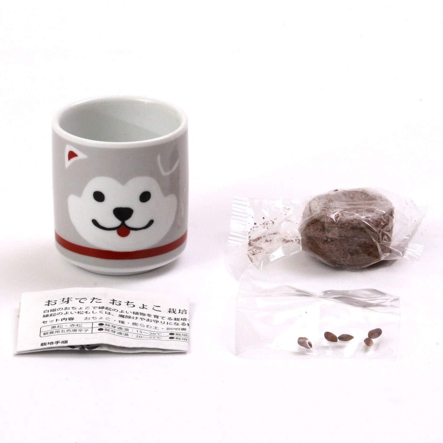聖新陶芸 春 / 秋の 手のひら庭園 まめ盆栽 盆栽キット ミニ 栽培キット ゆったり育てる 黒松 簡単 栽培セット ( 自由研究 ) 鉢の径約4cm お芽でたおちょこ ハチ公 グレー 母の日 プレゼント 誕生日 GD-92202