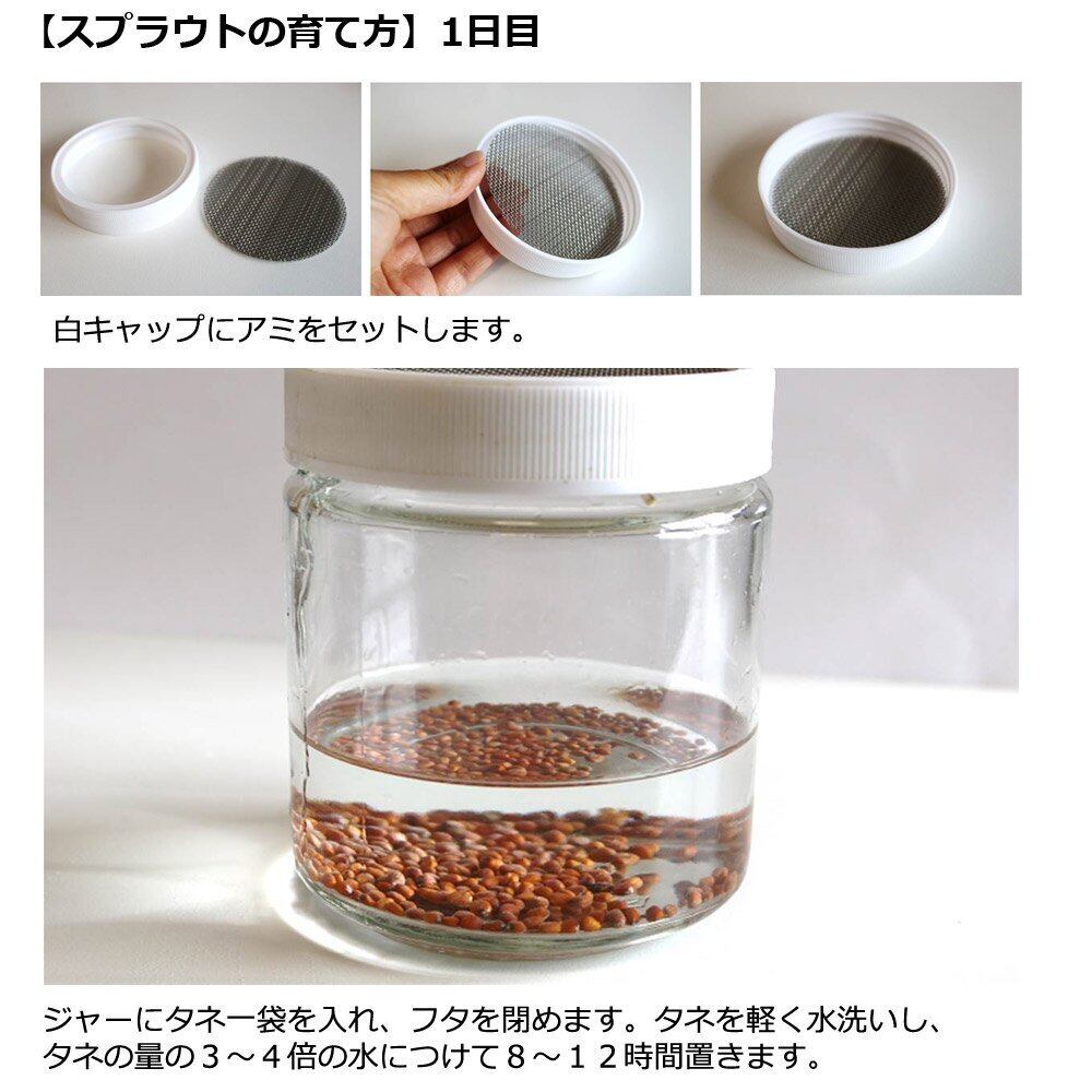 ジャーにタネを入れ、朝・晩水洗いして育てます。