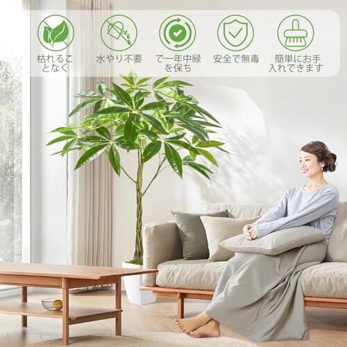 Wio Mio 人工観葉植物 高さ115cm フェイクグリーン 観葉樹 光触媒 観葉植物 消臭 パキラ 玄関やオフィスにぴったりのインテリア植物飾りです