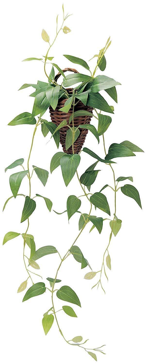 インテリアグリーン 造花 観葉植物 光触媒 フェイクグリーン つる ツタ クレマチス 壁掛け 60cm (かわいい 籐ポット入り) 163701