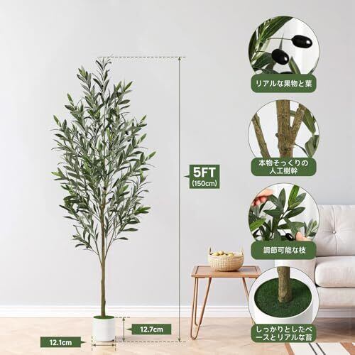 【組み立てやすい】オリーブの木は高さが150cmで、3つの部分に分かれているので取り付けやすいです。包装を開けるだけで、3分以内に本物のようなオリーブの人工木を家のインテリアとして手に入れることができます。お好みの木の枝を作ることができます。この木にはシンプルできれいな白い鉢がついているので、自分の好みに合わせて鉢を飾ることもできます