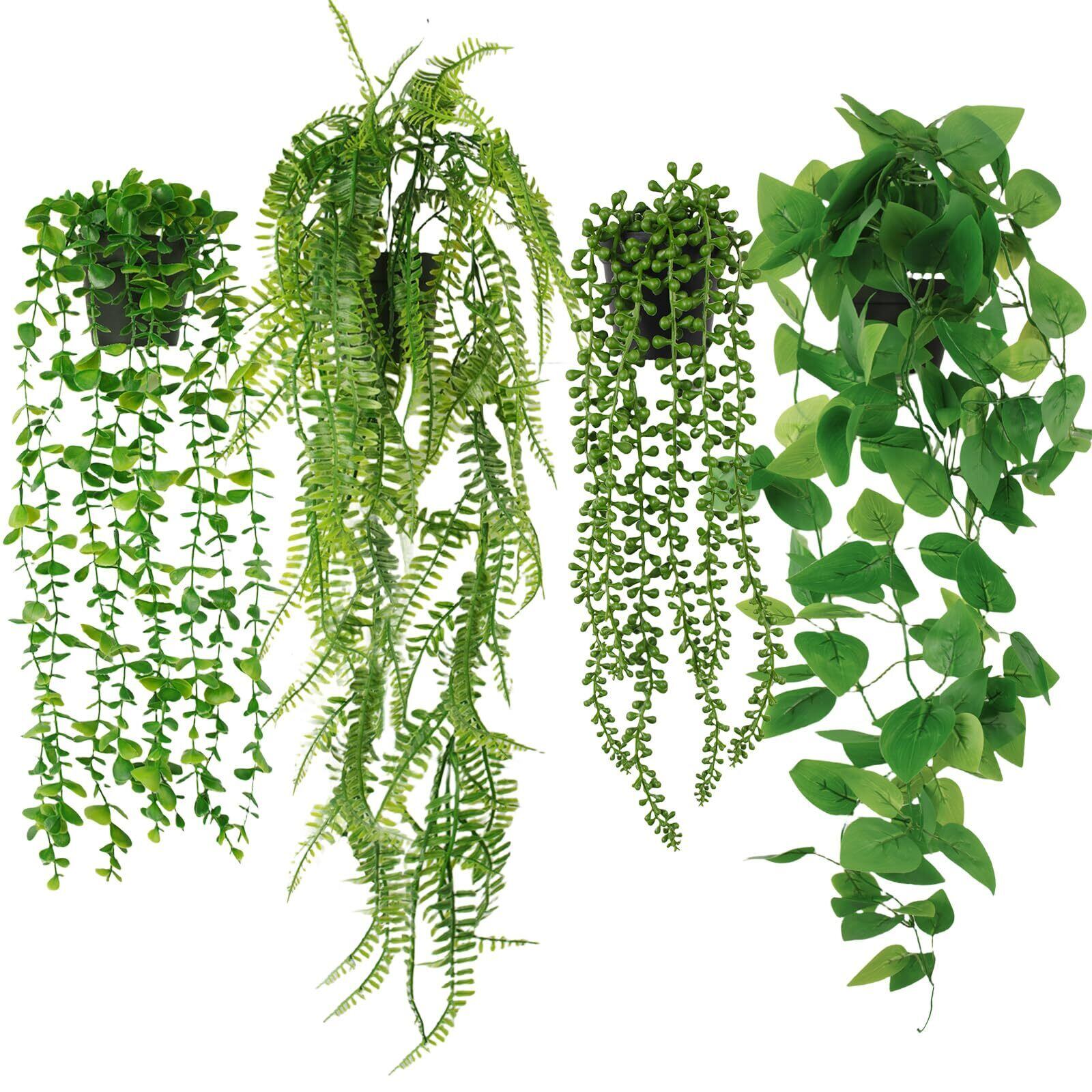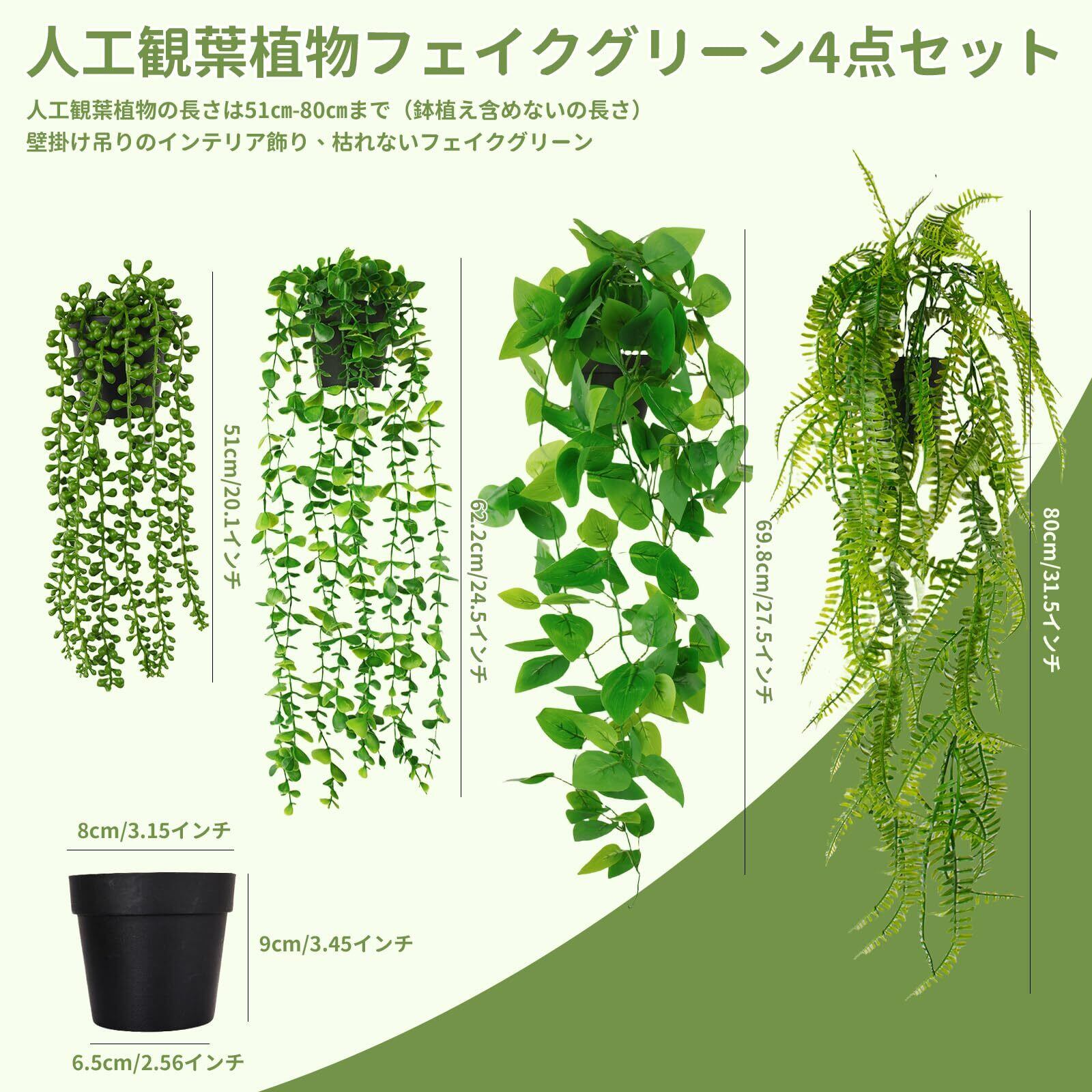 BELICOO 観葉植物 フェイク 4個セット 消臭 & 抗菌 フェイクグリーン 吊り下げ 卓上 造花 インテリア 室内外対応 省スペース 葉落ち防止 フェイクグリーン 壁掛け グリーン 水やり/お世話不要 家庭の花園 玄関 キッチン オフィス プレゼント お祝い 父の日