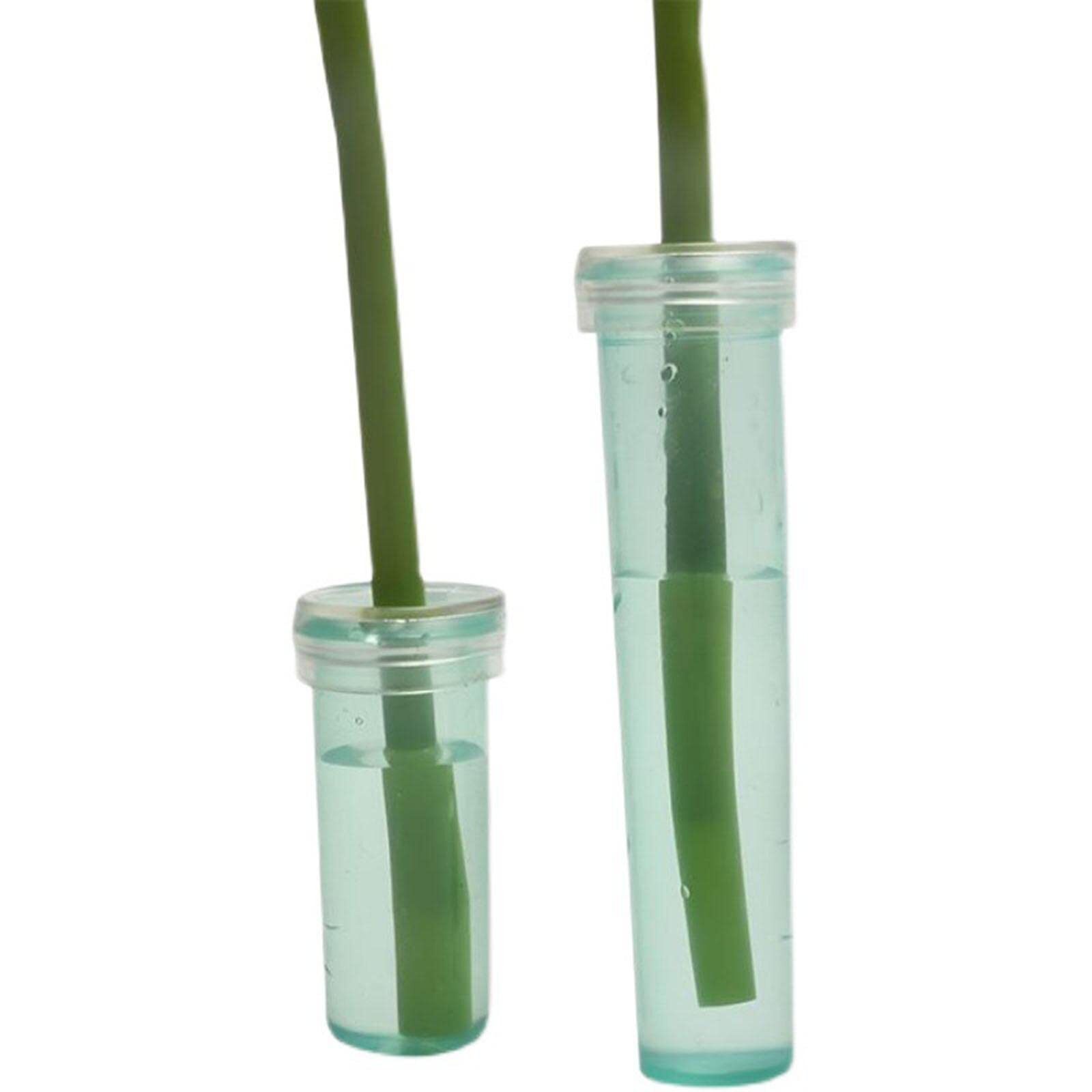 - シングルフラワーウォーターチューブ: 生花のウォーターチューブは直径0.6インチで、単一の茎の花に最適です。ソフトキャップで開くこれらの花のチューブは、さまざまな幅の茎に柔軟に対応できます。