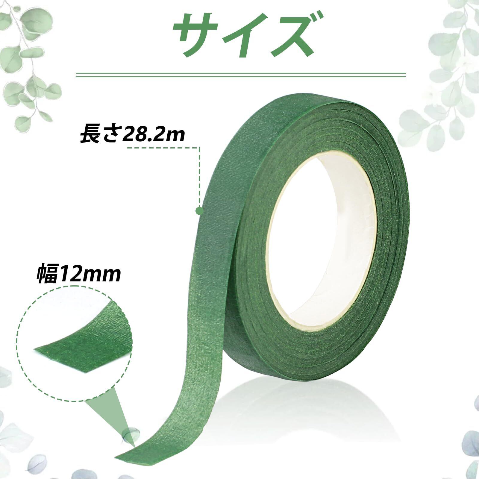 【仕様】幅12mm長さ28.2mの天然グリーン6巻とグリーン3巻が付属し、合計フラワーテープ9巻入り。