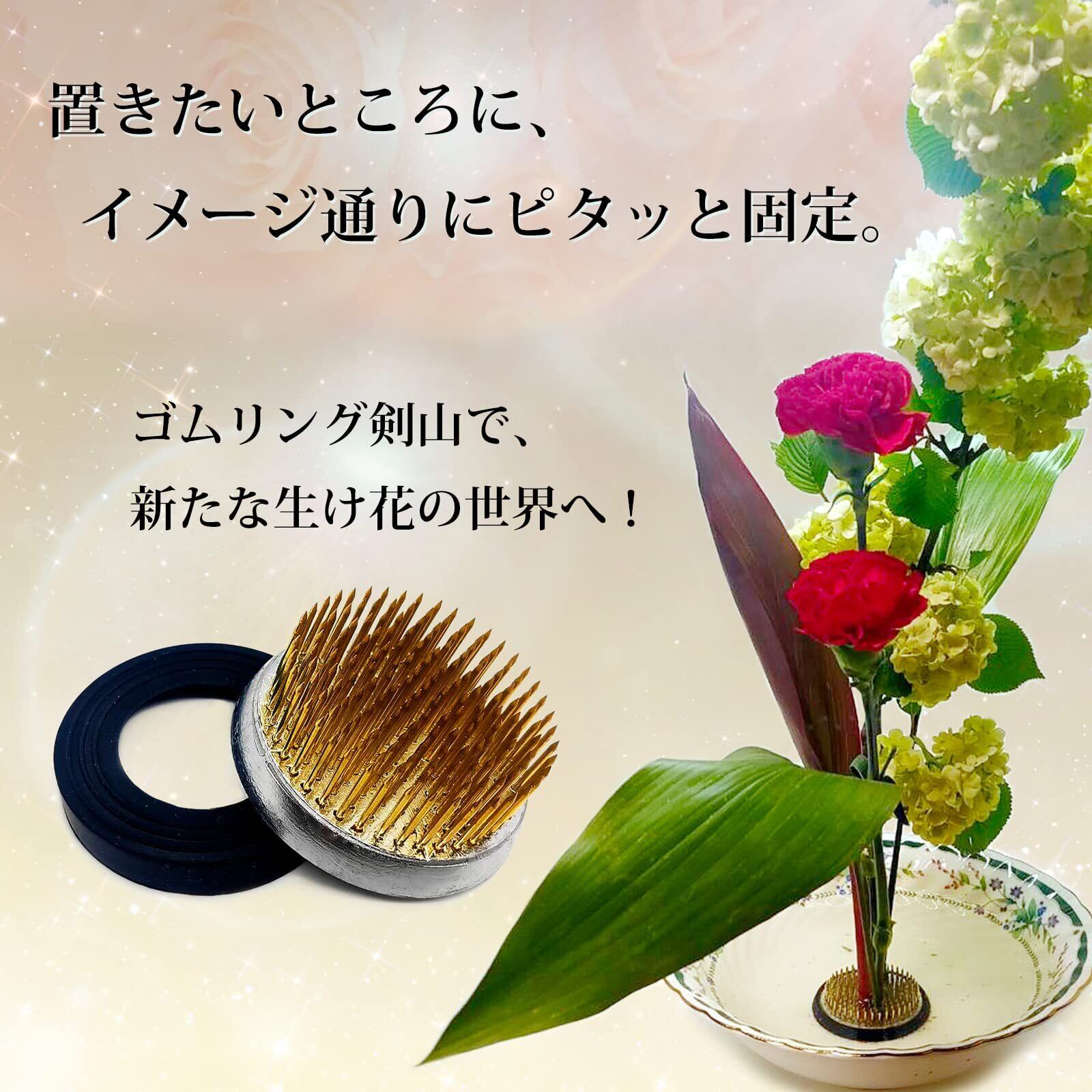 【ぴたっと固定】滑り止めゴムリングを備えたこの剣山は、安定感抜群で花器に優しい設計。ゴムリングが底面にしっかりと接触し、滑りにくく安定した生け花を実現。花器を傷つける心配もなく、あらゆるシーンで美しい生け花を楽しむことができます。
