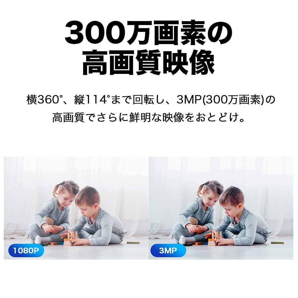 [特徴] 300万画素。横360度、縦114度まで回転するパン・チルト機能搭載のみまもりカメラ。