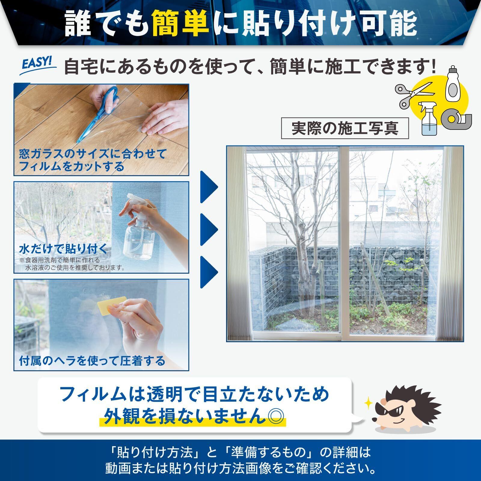 【防犯ステッカーでさらに効果UP!】外から目立つ場所に貼り付けると防犯対策がより効果的に◎あまった防犯ステッカーは、予備としても別の場所に貼っても効果的です。※空き巣や強盗、盗難等の犯罪の防止・抑止をするものではありません。【自然災害もダブル対策】台風や地震などの予期せぬ自然災害も年中対策。飛来物や家具の転倒などにより窓ガラスが割れた場合でも、ガラスの飛散を防ぐため、飛んできた破片や散らばった破片によって怪我をすることを防ぎます。