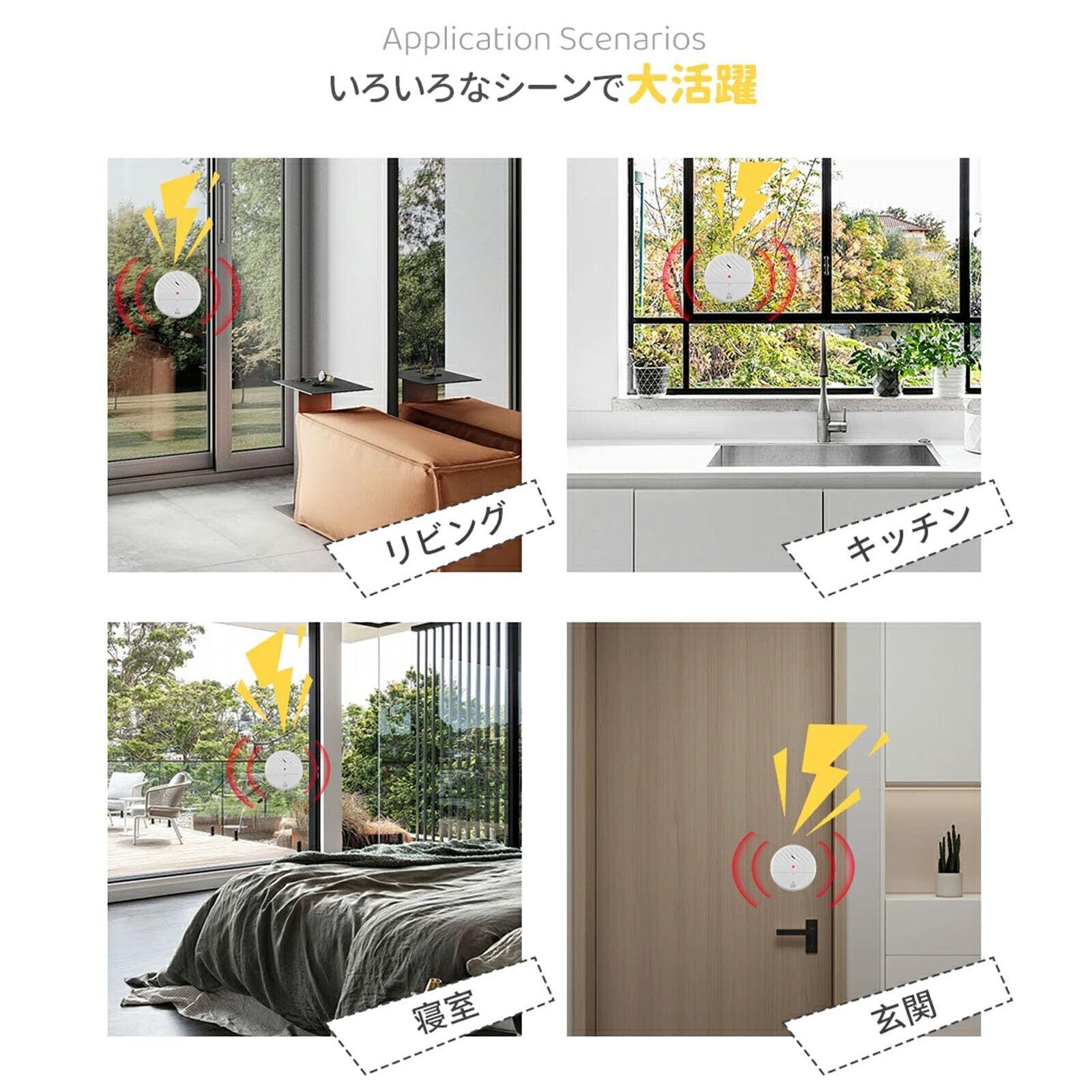 【様々な場所で使用】このウィンドウアラームは家のドアや窓だけでなく、車の窓にも使用でき、空き巣の防止に役立ちます。どこにでも設置でき、安全を確保できます。ただし、一度貼り付けると剥がしにくいので、事前に貼り付ける場所をご検討ください。