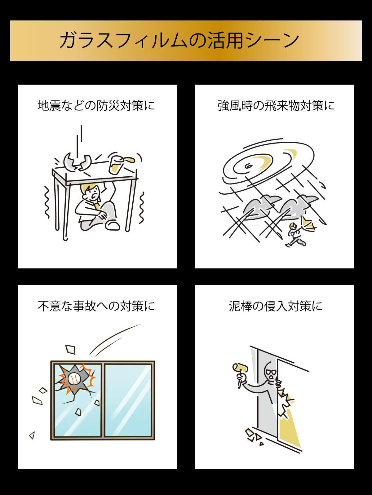 【主な用途】・台風などの強風対策・地震などの振動対策・泥棒への侵入対策・不慮の事故への対策