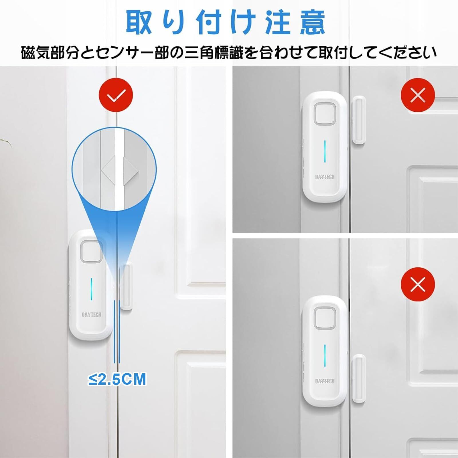 【貼るだけ簡単】簡単操作ですので、ご使用しないの心配ありません。付属の両面テープで取り付けでいいです。ドア、玄関の引き戸、滑り出し窓用、冷蔵庫、爬虫類ケージ等平坦なところでどこでも付けます;ホストとセンサー間の距離は0〜2.5cmです