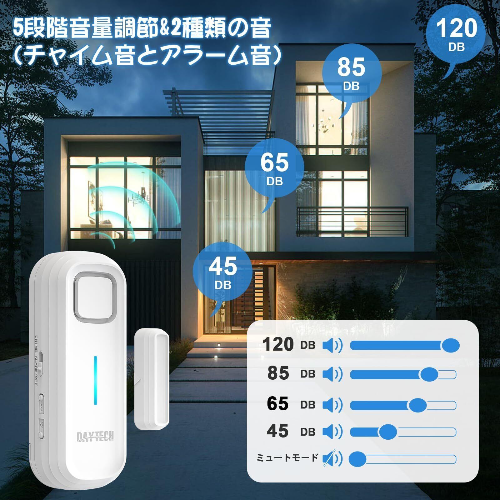 【5段階音量調節】5段階音量(0~120dB)調節できるので、ご隣人にご迷惑をかけないように、場所/時間によって調整できます。家、事務所、店等いろんな場所で使用できます