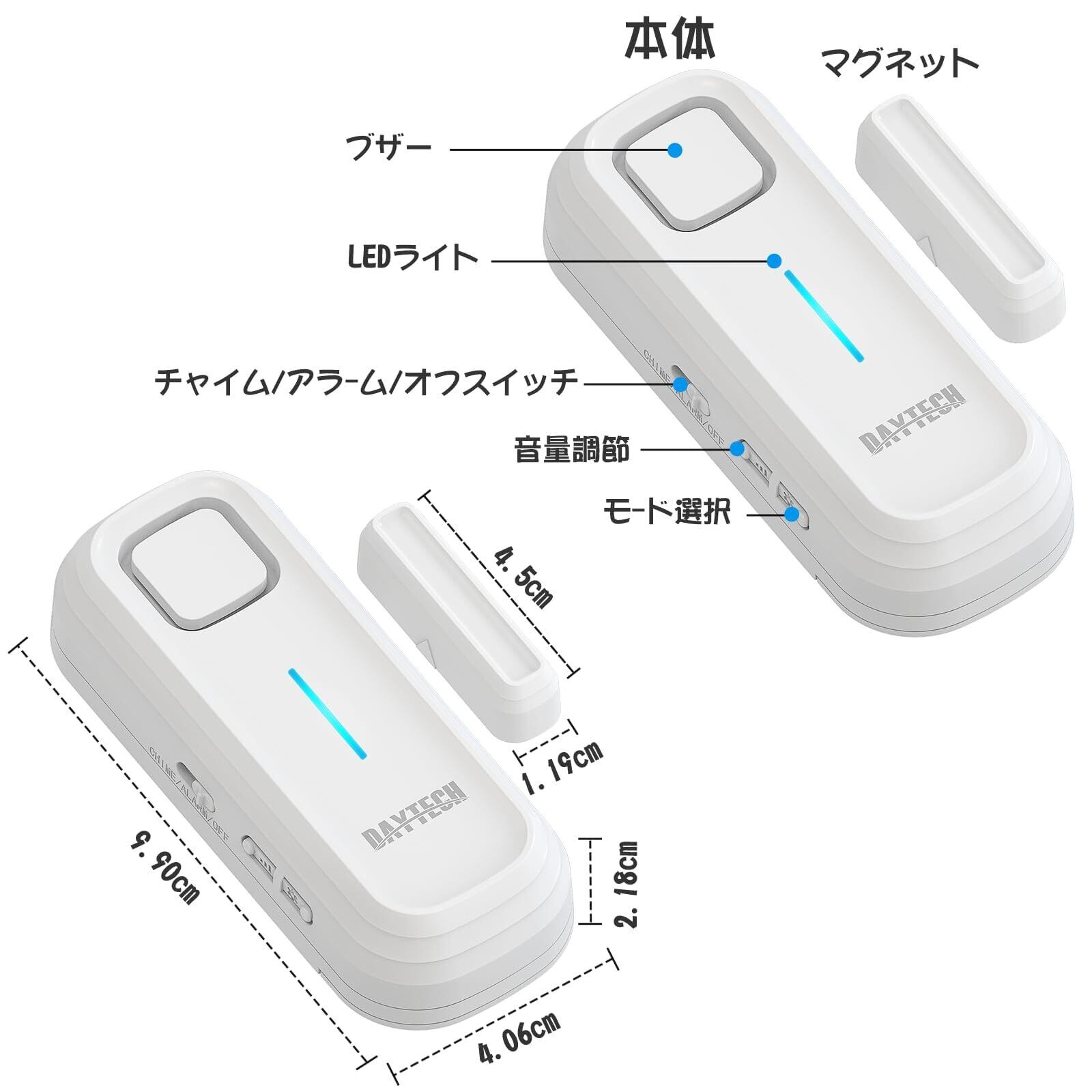 【多様な用途】シニアや子供の往来を検知するためにドアに貼って使用できる開閉感知アラーム、訪問客への応対に适したドアベル、冷蔵庫のドアを忘れるのを防ぐための忘れアラーム、また窓に設置して犯罪から身を守るためのセキュリティーアラームとしても活用できます