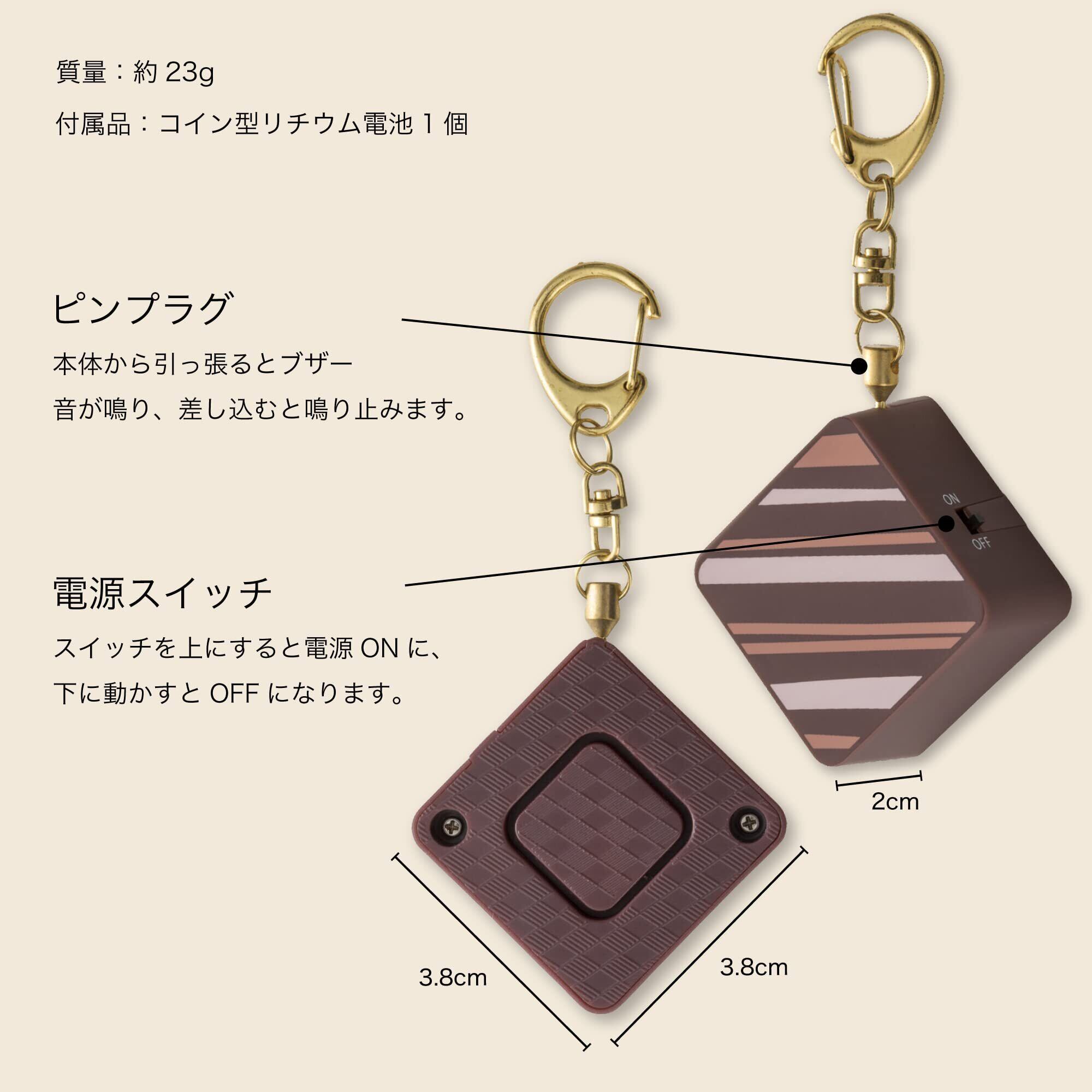 プリンセス防犯ブザーシリーズ ショコラ。誤作動を防止する電源スイッチ付き