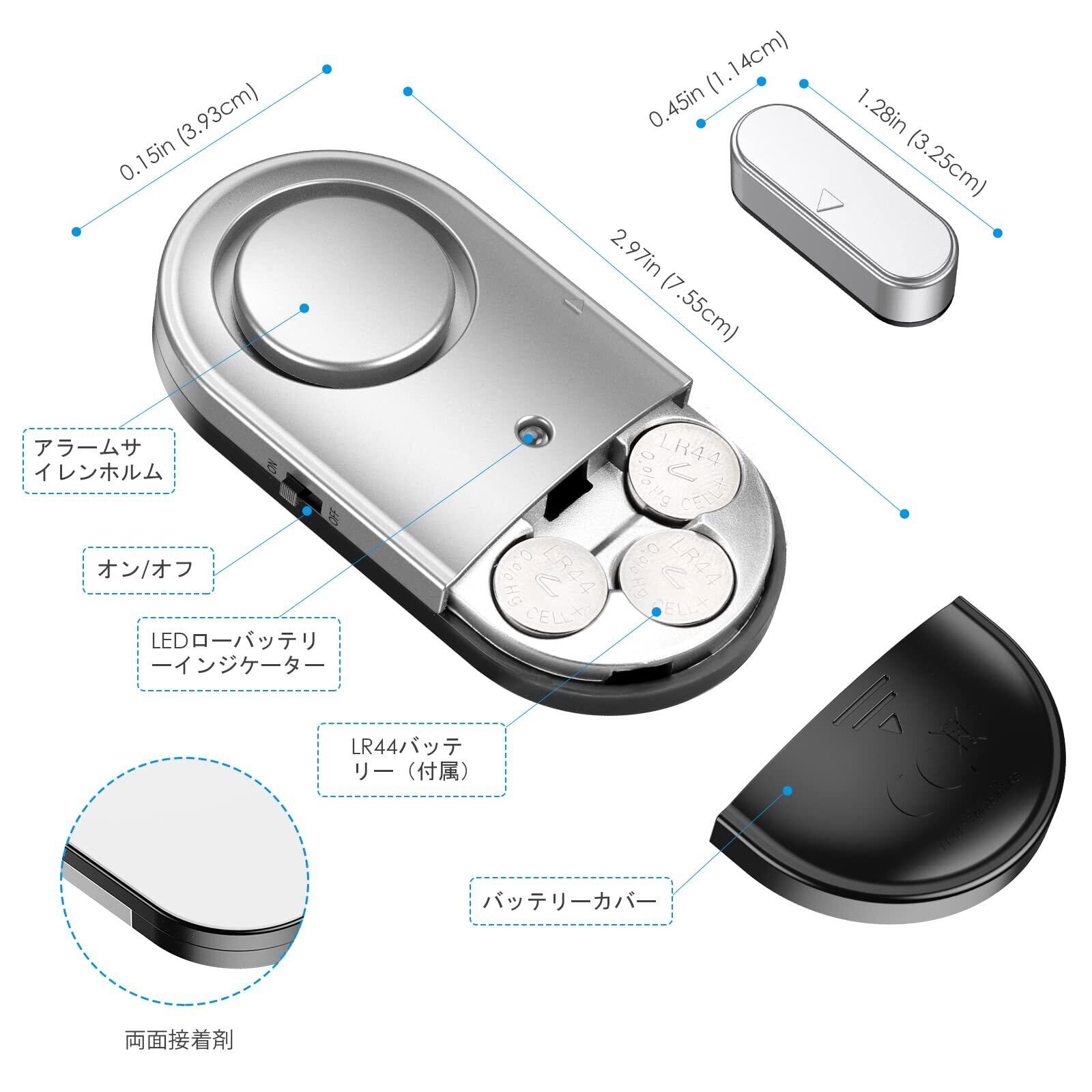 【ローバッテリーインジケーター】このドアアラームにはローバッテリーインジケーターが付いており、正常に動作しないことを心配することなく、いつバッテリーを交換するかを簡単に知ることができます。 (LR44バッテリー3個を含む)