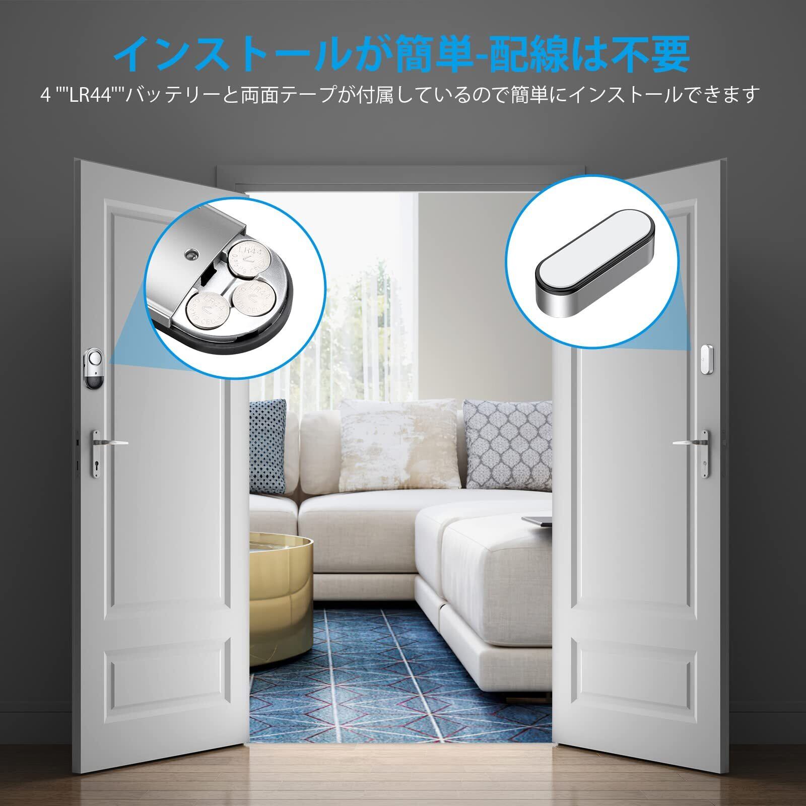 【取り付けが簡単】アラームの磁気センサーは接着剤で簡単に取り付けられ、窓やドアに貼り付ければ完了です!