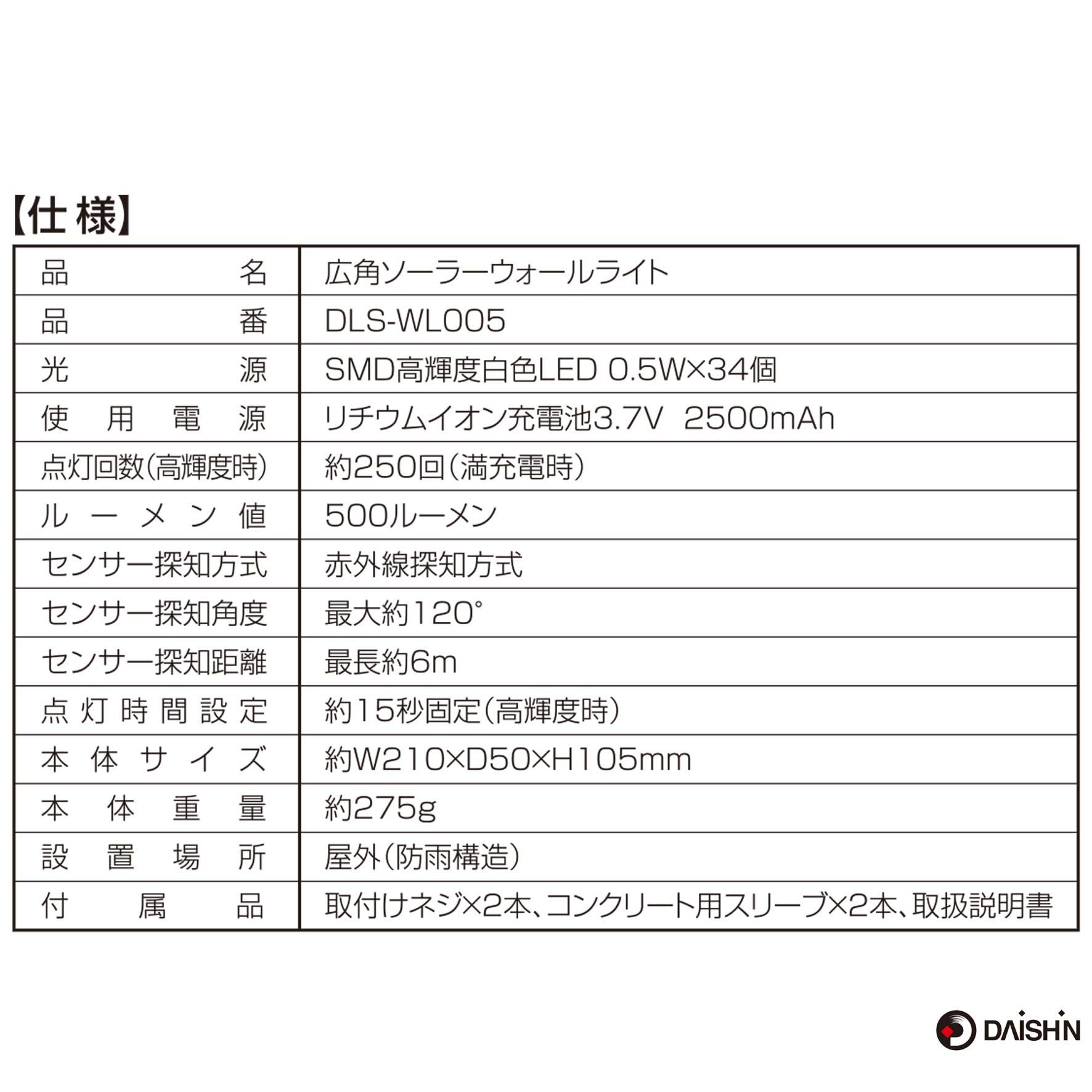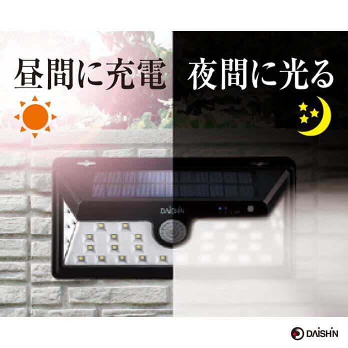 DAISHIN ソーラーライト DLS-WL005 センサーライト 屋外 ソーラー 人感 led 防雨 マグネット led 人感センサー ライト ルーメン 外 防犯ライト ソーラーライト ガレージ 庭 玄関 灯 広範囲 防犯ライト ソーラーライト 駐車場 明るい