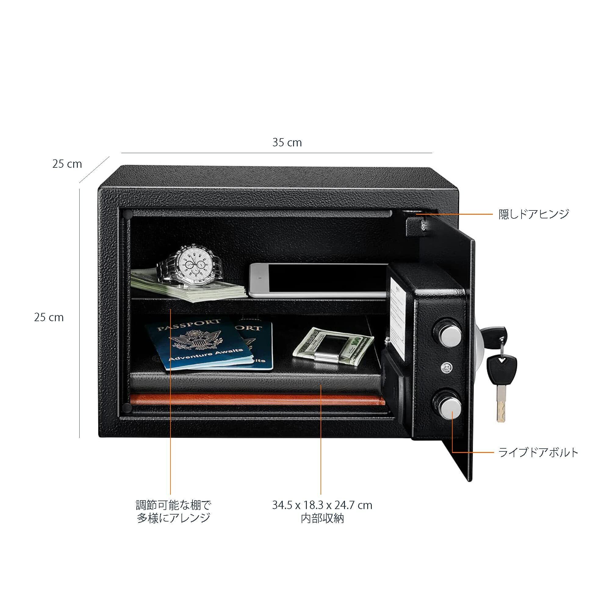 ベーシック 金庫 家庭用 業務用 電子式 14L (幅35cm x奥行25cm x 高さ25 cm) スチール ブラック