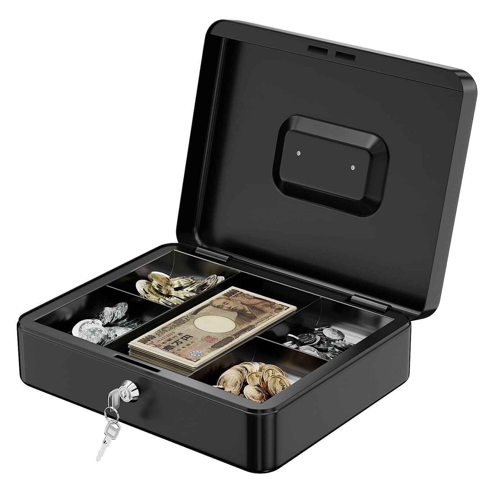 Beemyi手提げ金庫 家庭用 小型 キャッシュボックス キャッシュメイトA5サイズ 会計 オフィス ミニ金庫 貯金箱 スチール製 家庭用 セキュリティボックス(Black, W30×D24×H9cm)