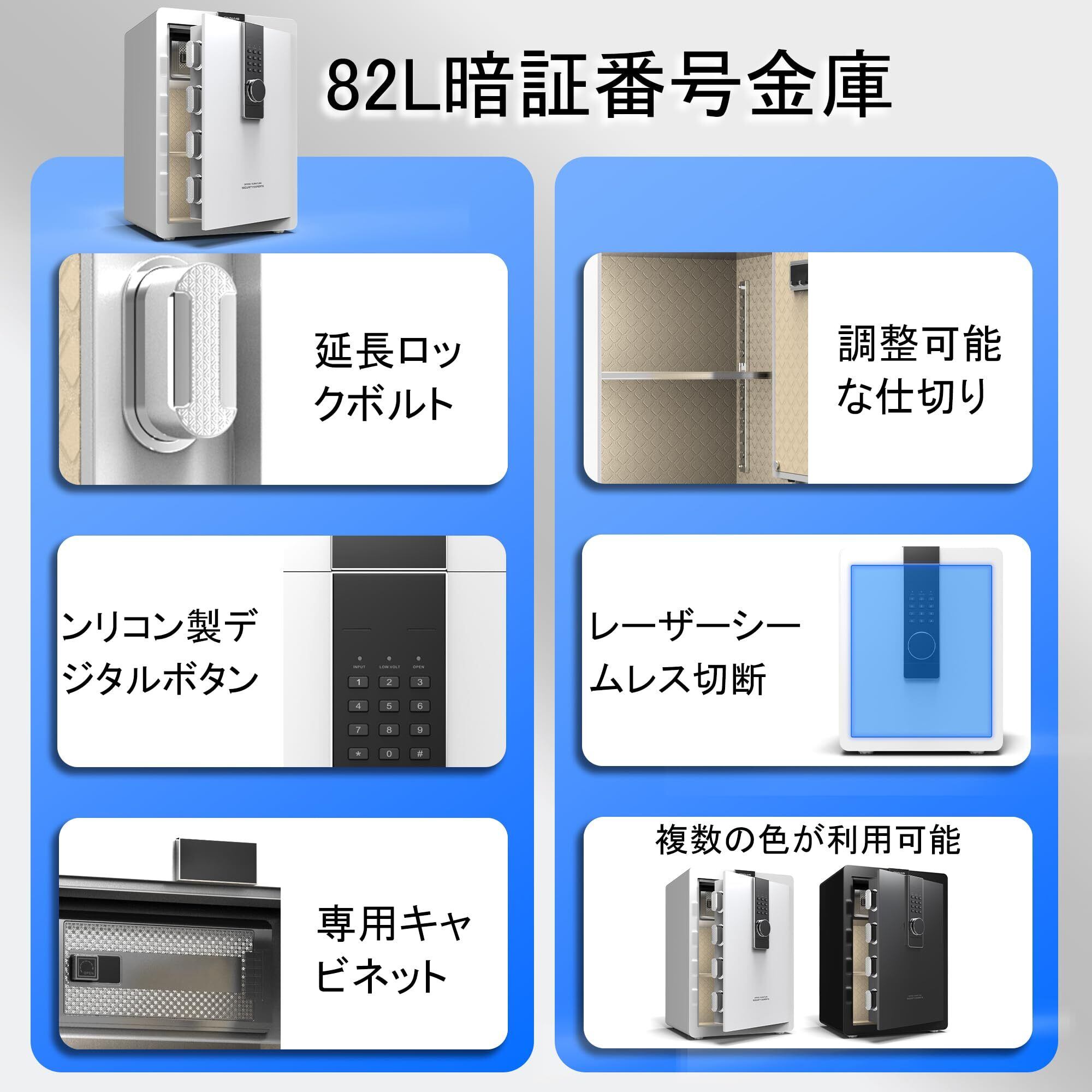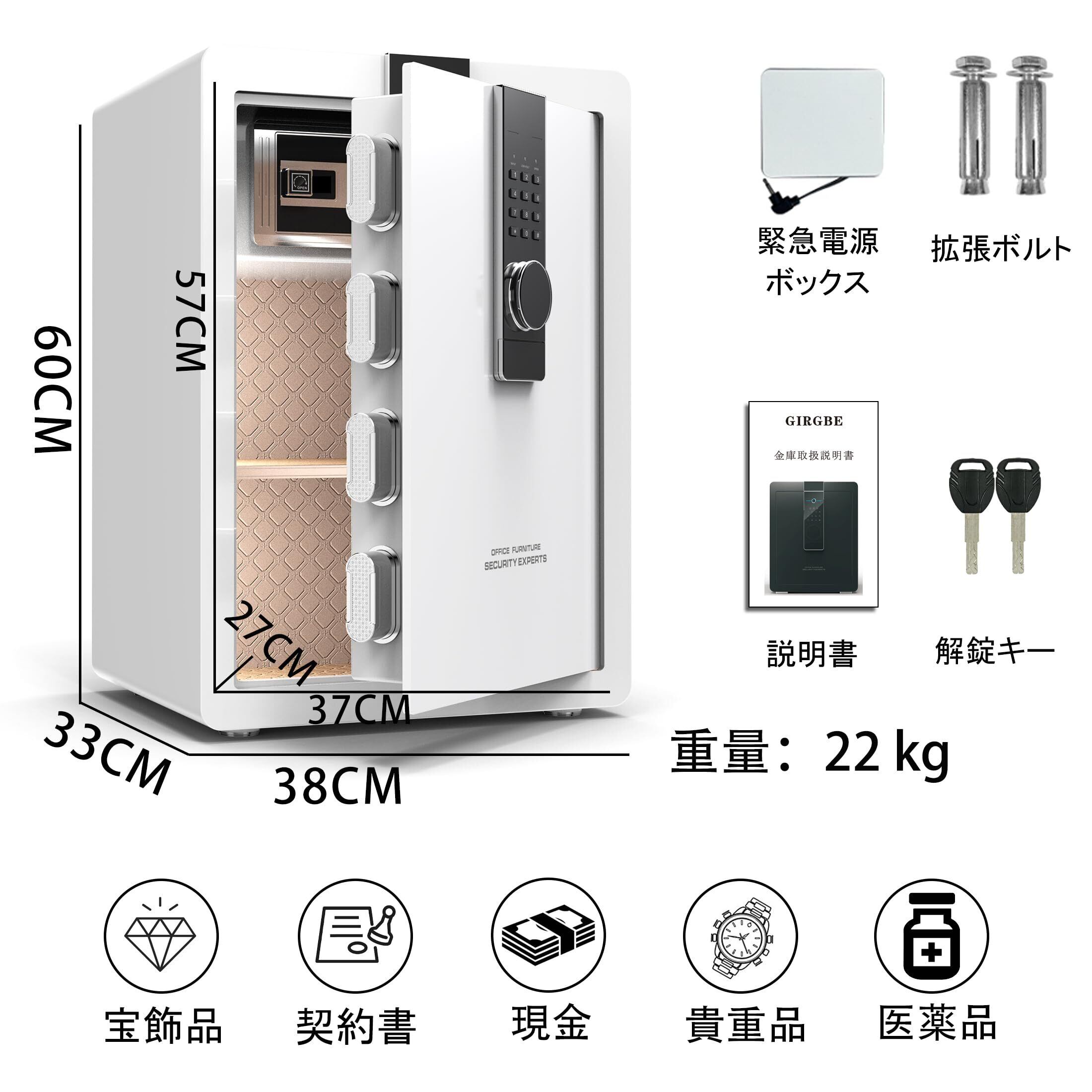GIRGBE【強化版】超大 家庭用 暗証番号 82L 金庫 床・壁に固定可能 盗難防止 警報アラーム 保险柜 業務用/事務所/ホテル/店用/旅館 防犯金庫 A4 ファイル/宝石/貴重品/現金 保险箱 日本語取扱説明書付 ホワイト 家庭用人気 safe 82L (ホワイト, 82L)