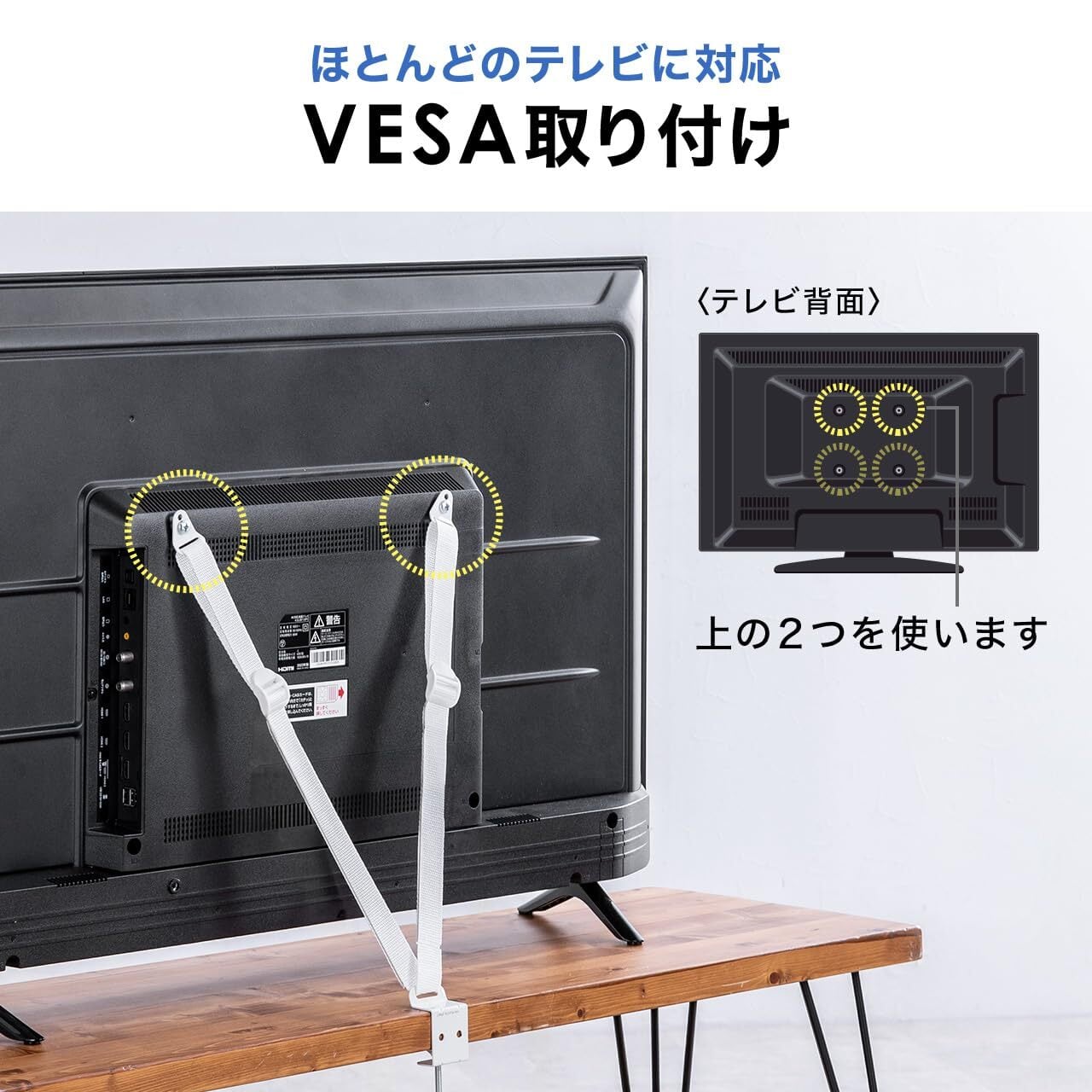サンワダイレクト テレビ 転倒防止ベルト VESA取付 クランプ式 【粘着/穴開け不要】壁固定対応 100-PL023