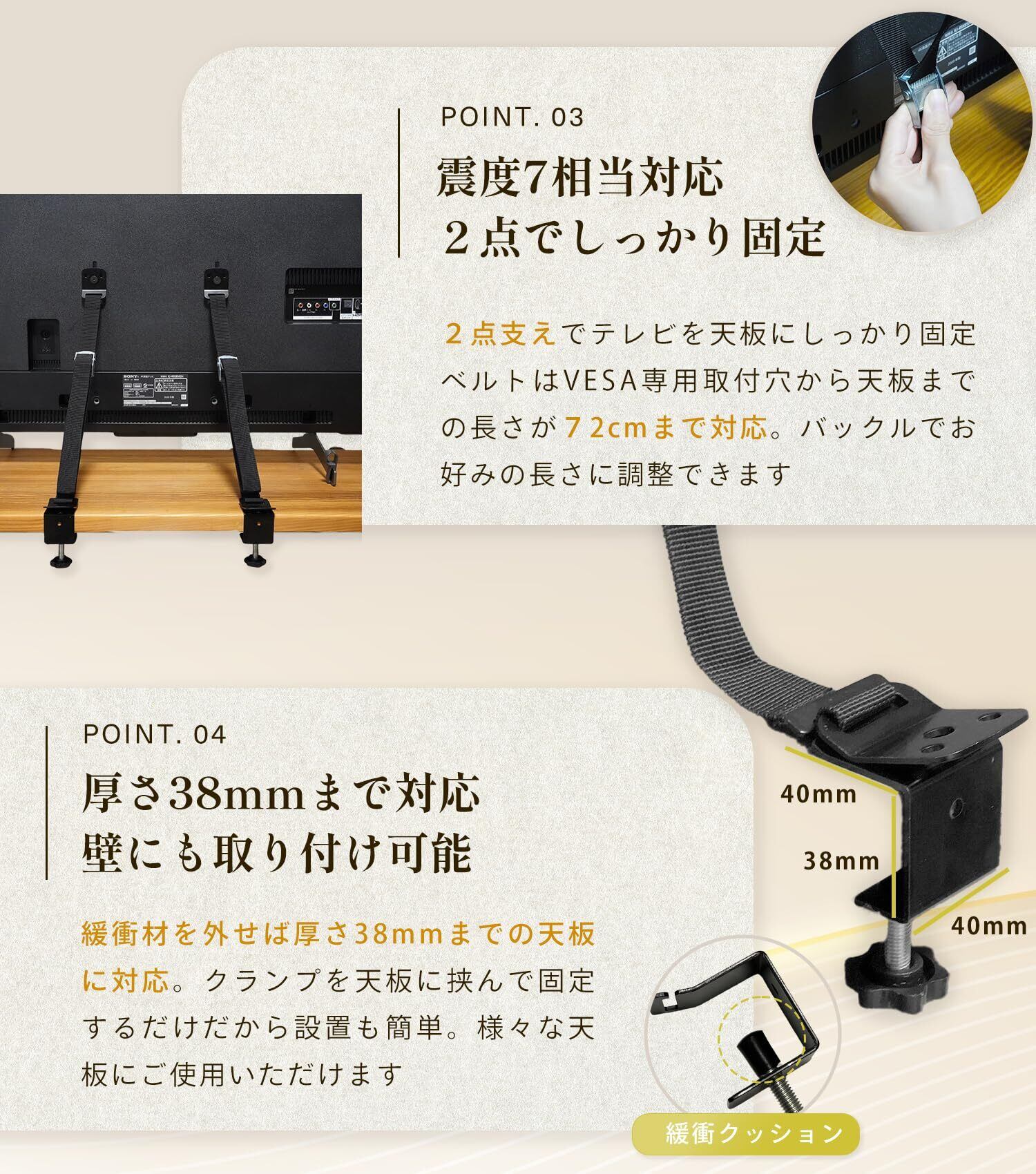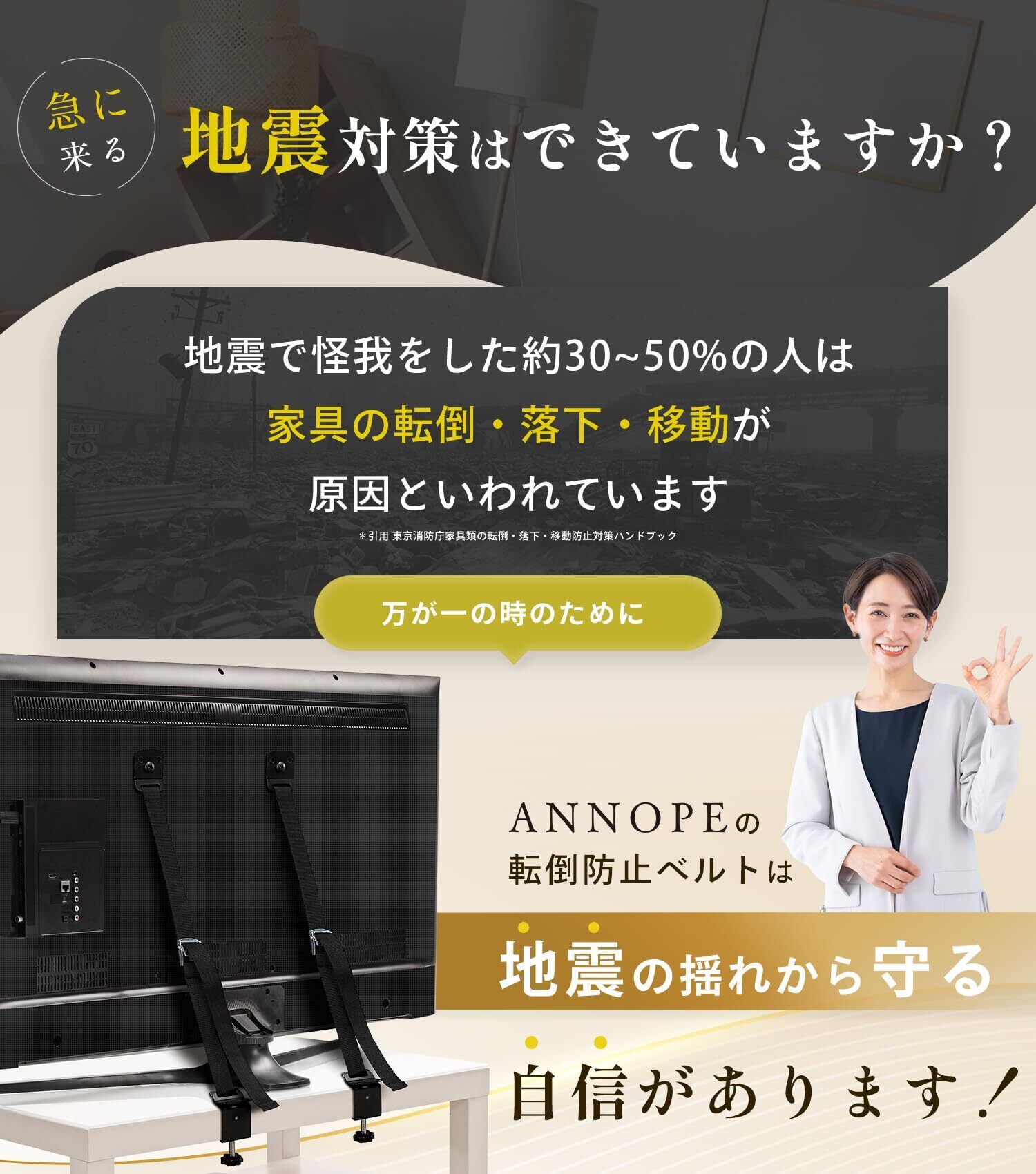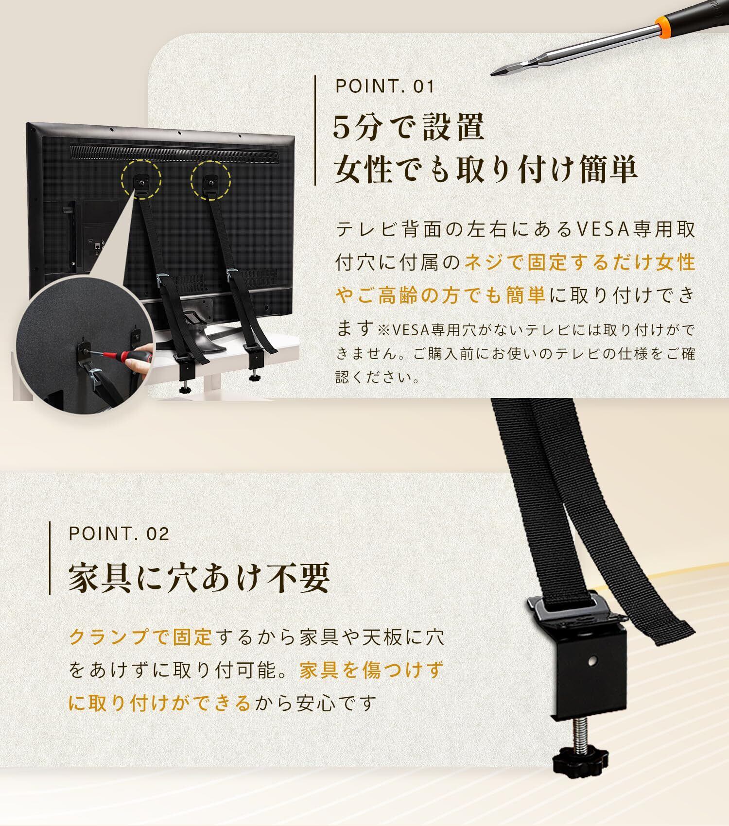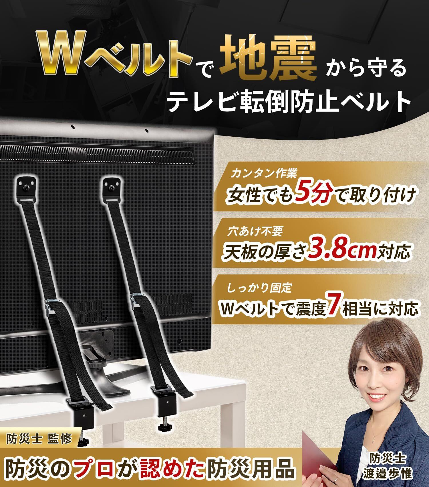 【防災士監修】 テレビ 転倒防止 ベルト 地震対策 穴あけ不要 クランプ式【女性でも5分で設置】 地震 家具 てんとう防止 用品 耐震 震度7対応 テレビ 転倒防止グッズ 耐震ベルト テレビ 固定 災害 防災用品 TV テレビ固定ベルト 取扱説明書 ネジ付属 ANNOPE