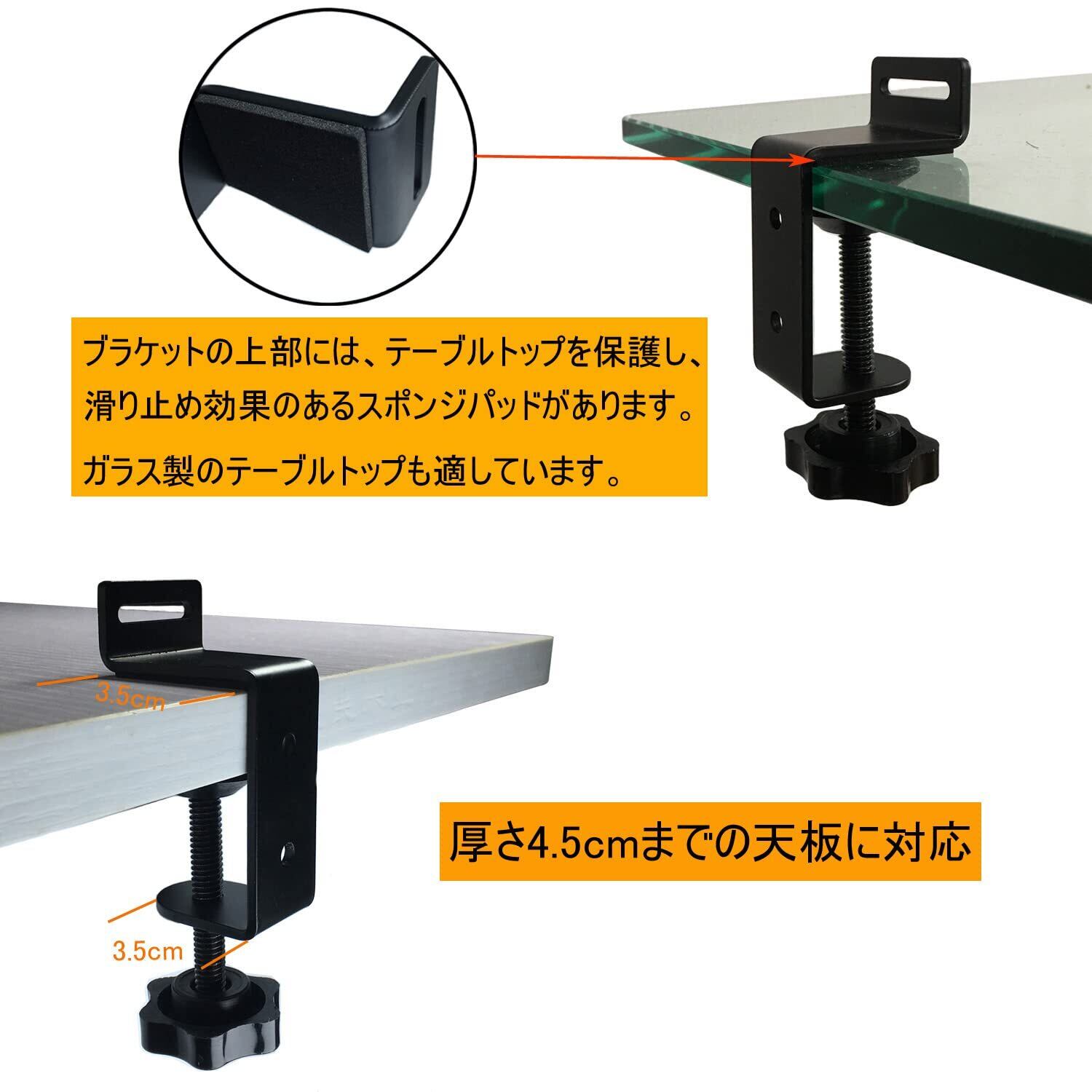 【挟む機能】挟むは1CM-4.5CM平板に適しています。クリップの上部にはクッションが付いており、滑りにくいだけでなく、卓上を保護することもできます、木製およびガラス天板は両方とも適用。クリップの機能に加えて、巻き戻し防止ベルトはネジとアンカーで壁に固定することもできます。