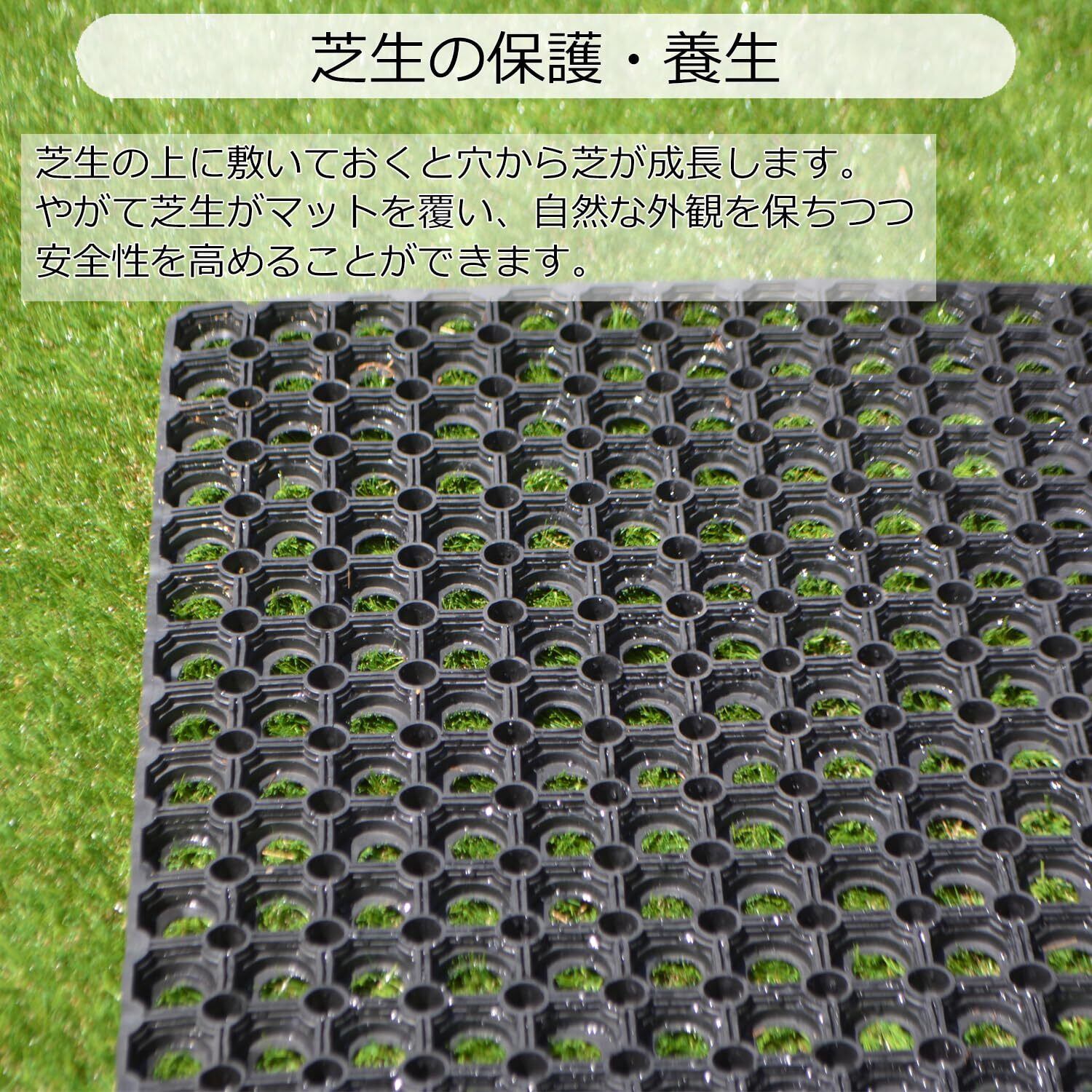 芝生の上に敷いておくと穴から芝生が成長し、やがてマットをほぼ隠すことができます。