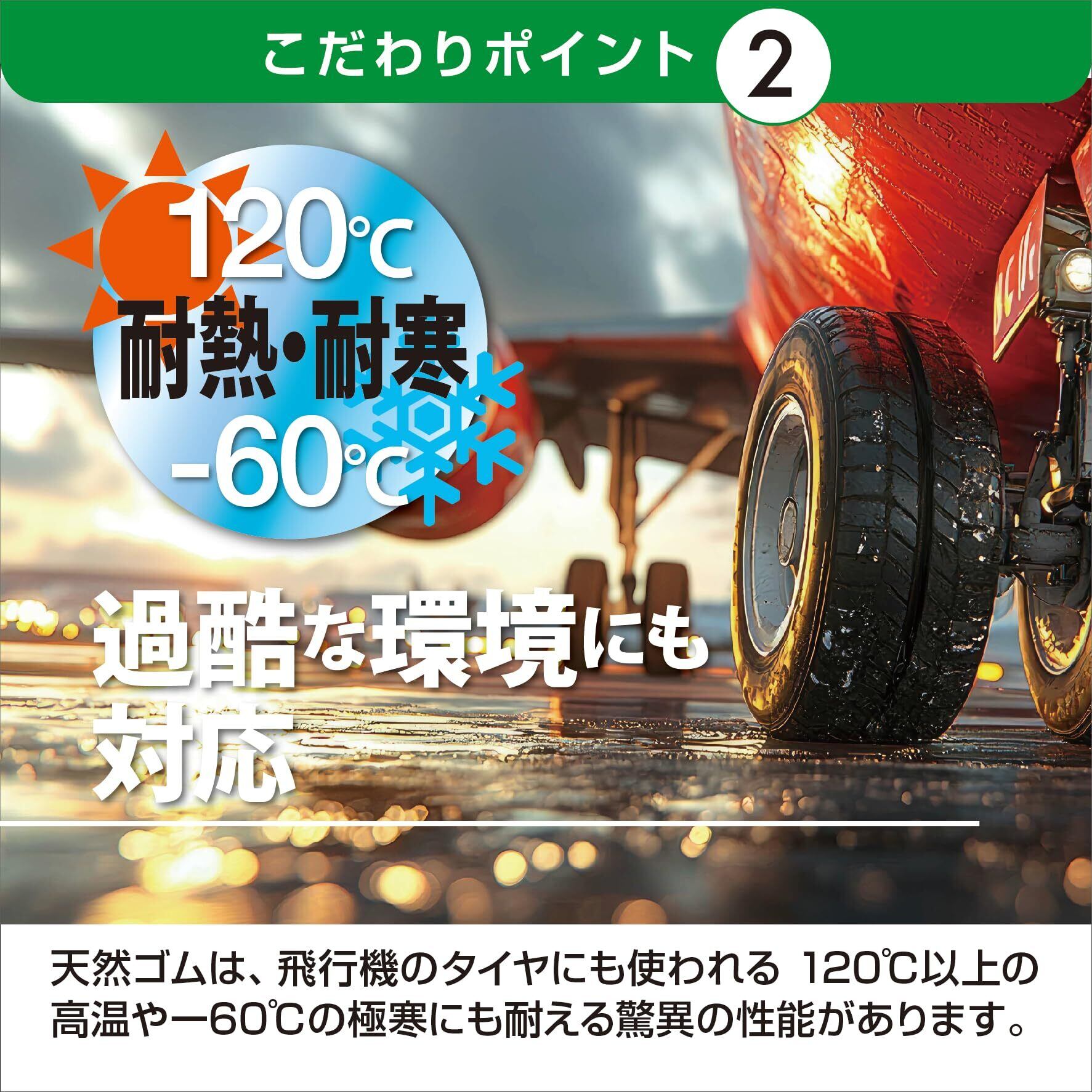 • 過酷な環境にも対応:天然ゴムは、飛行機のタイヤにも使われ、120℃以上の高温や-60℃の極寒にも耐える驚異の性能。