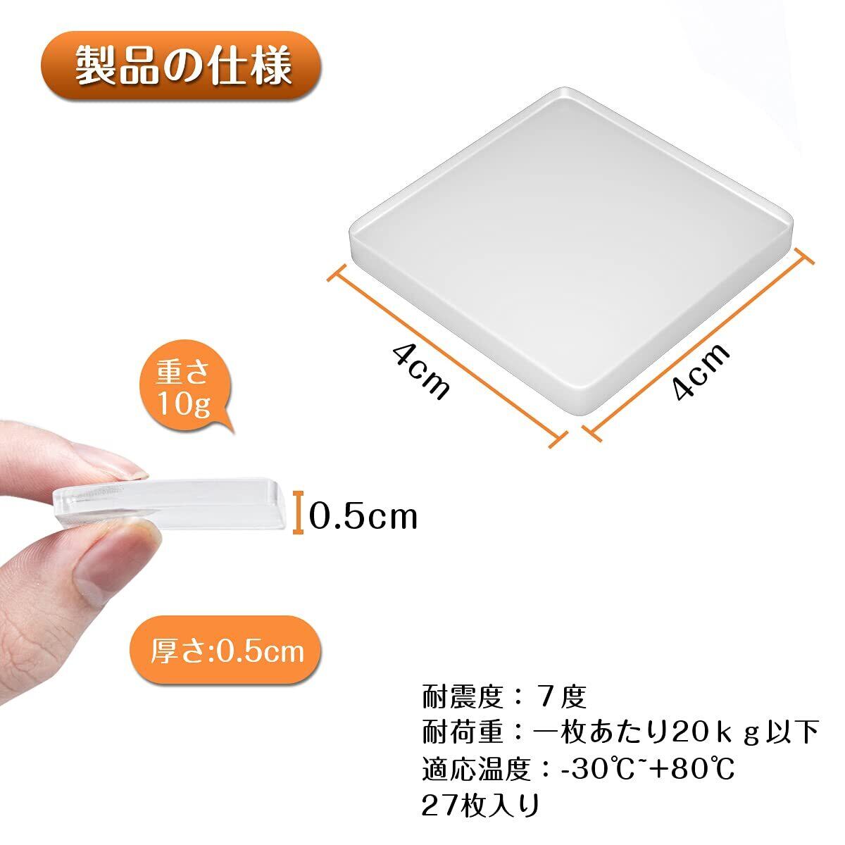 耐震ジェル Ninonly 耐震マット 27枚入り 粘着マット 震度7まで対応 テレビ 家具 滑り止め 転倒防止 水洗い可能 静音マット 振動吸収 地震対策 防炎対策 静音ジェル 冷蔵庫 透明 クリア 4X4X0.5 CM