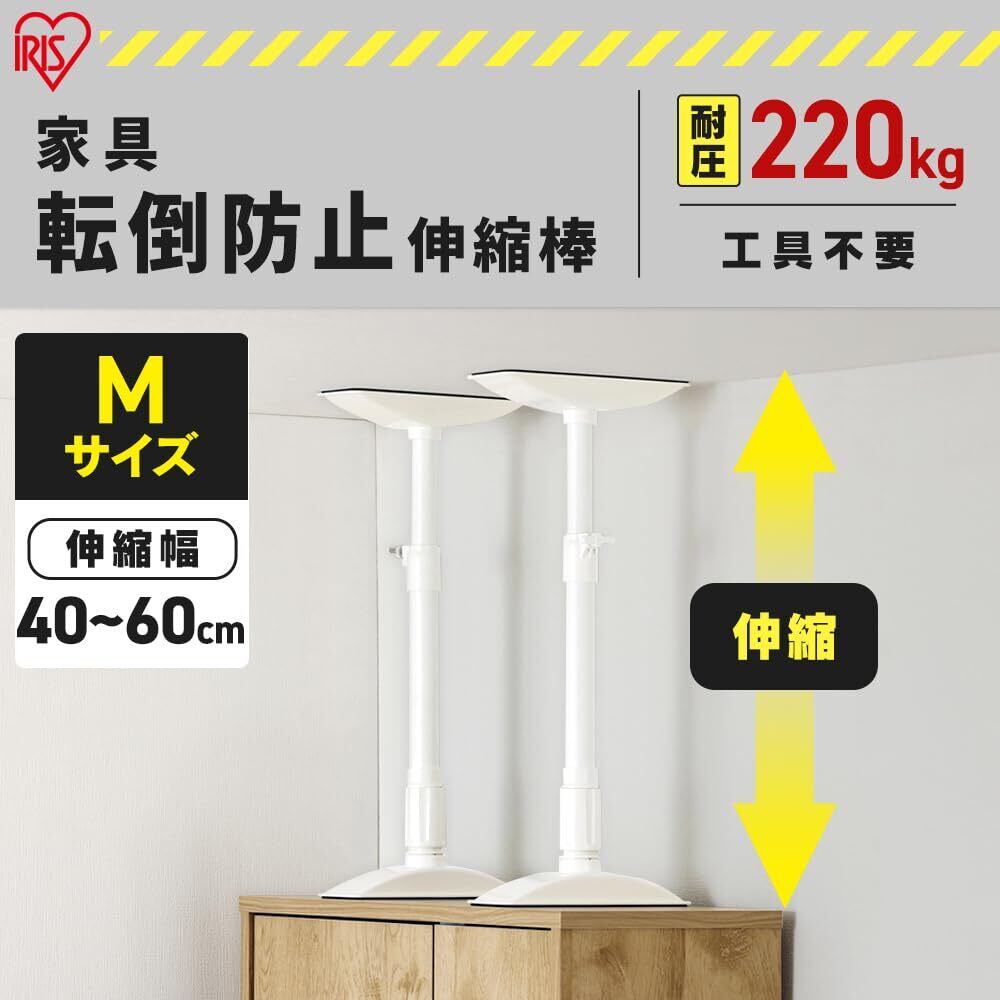 アイリスオーヤマ 家具転倒防止伸縮棒Mサイズ 防災グッズ KTB-40R ホワイト