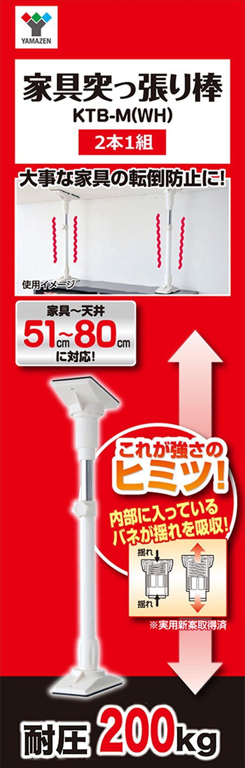 山善(YAMAZEN) 家具突っ張り棒(長さ51-80cm)2本1組 ホワイト KTB-M(WH)