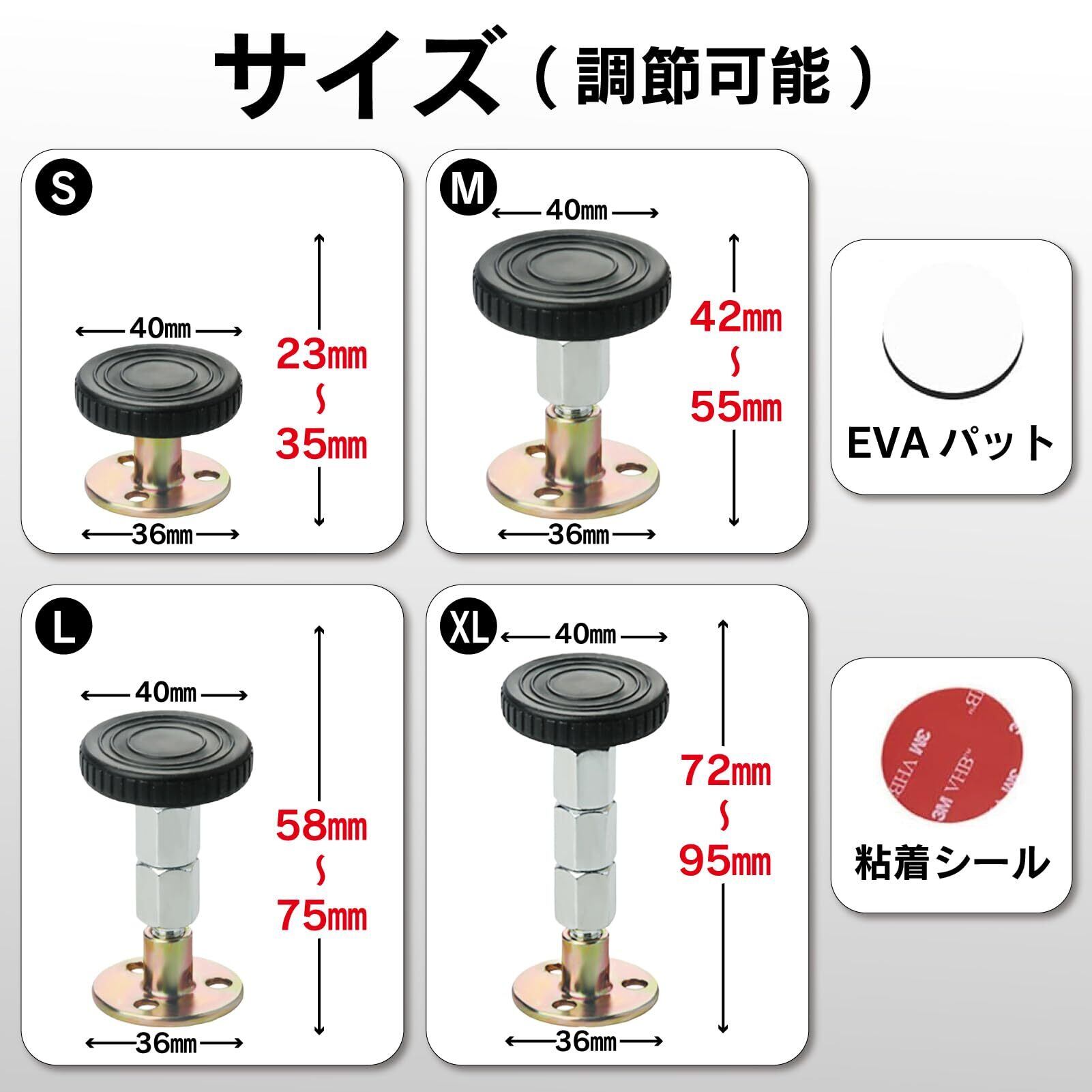 【サイズ】S: 23mm~35mm、M: 42 mm~55mm、L: 58mm~75mm、XL: 72mm~95mm(ナットの幅:40cm、反対側:35mm)