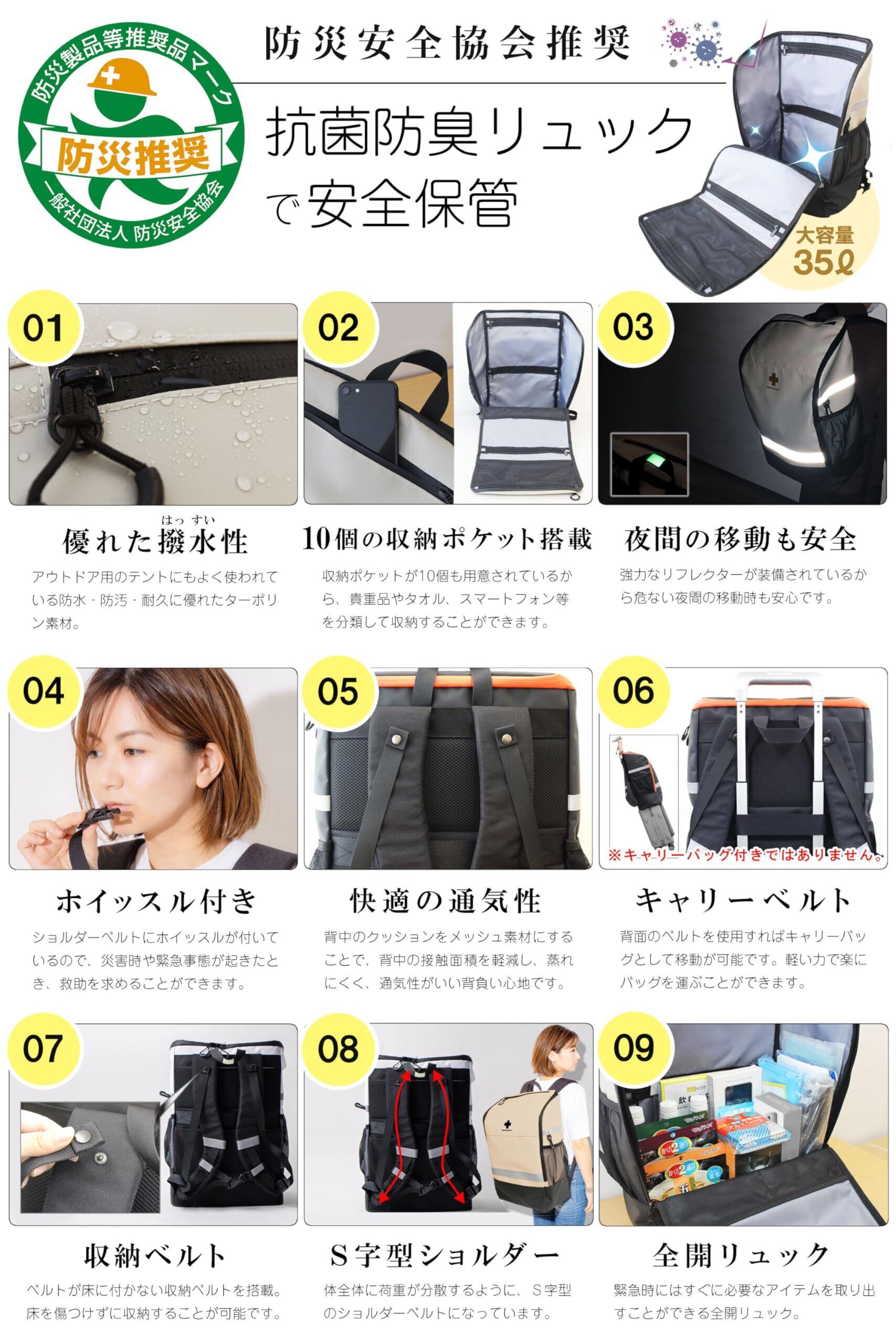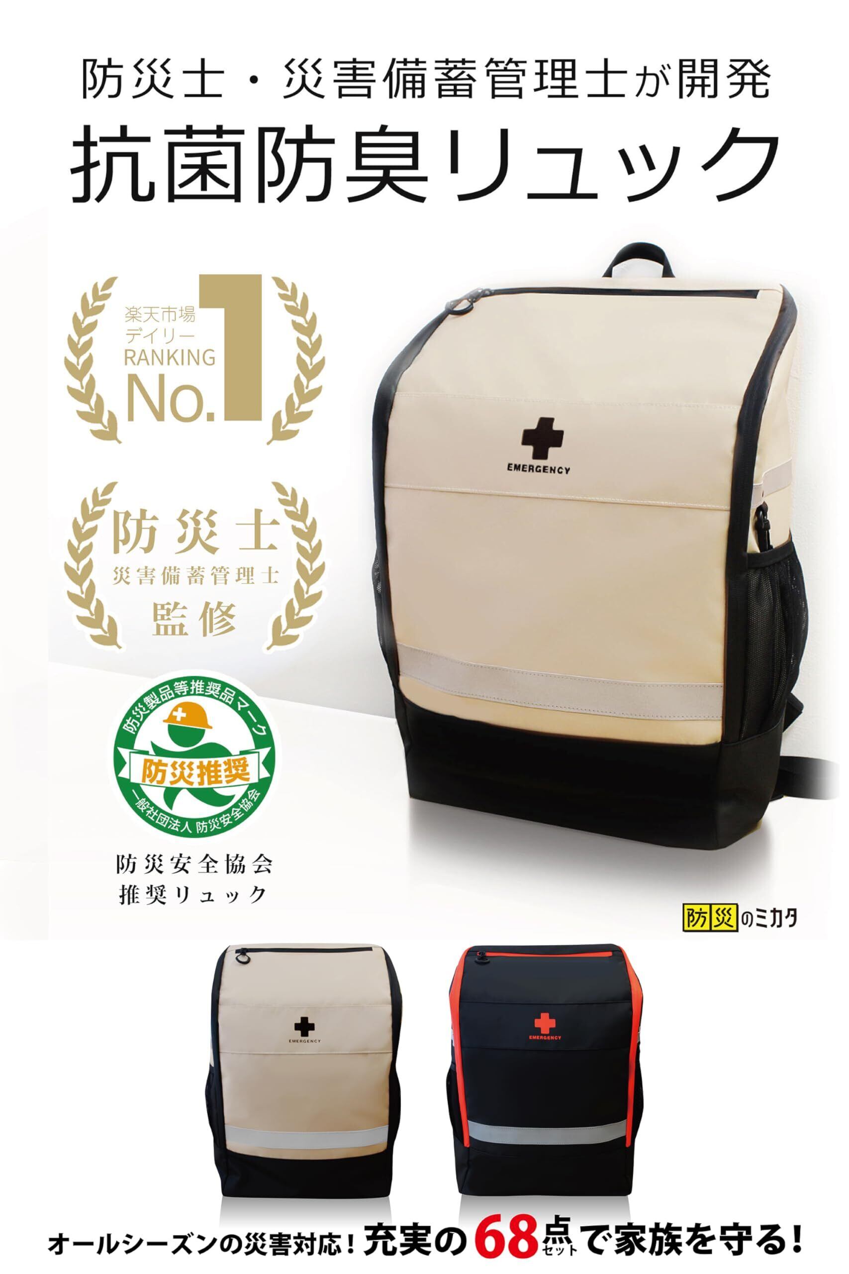 防災グッズ 【 防災士が監修した 】リュック (避難リュック たったこれだけ!) 非常用持ち出し袋/バッグ セット [ 防災のミカタ ] 避難グッズ メタプレミアム 2人用 ベージュ 68点