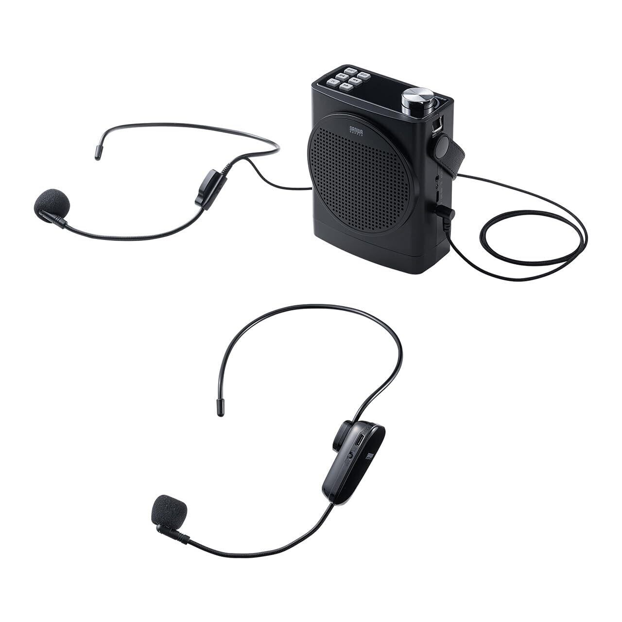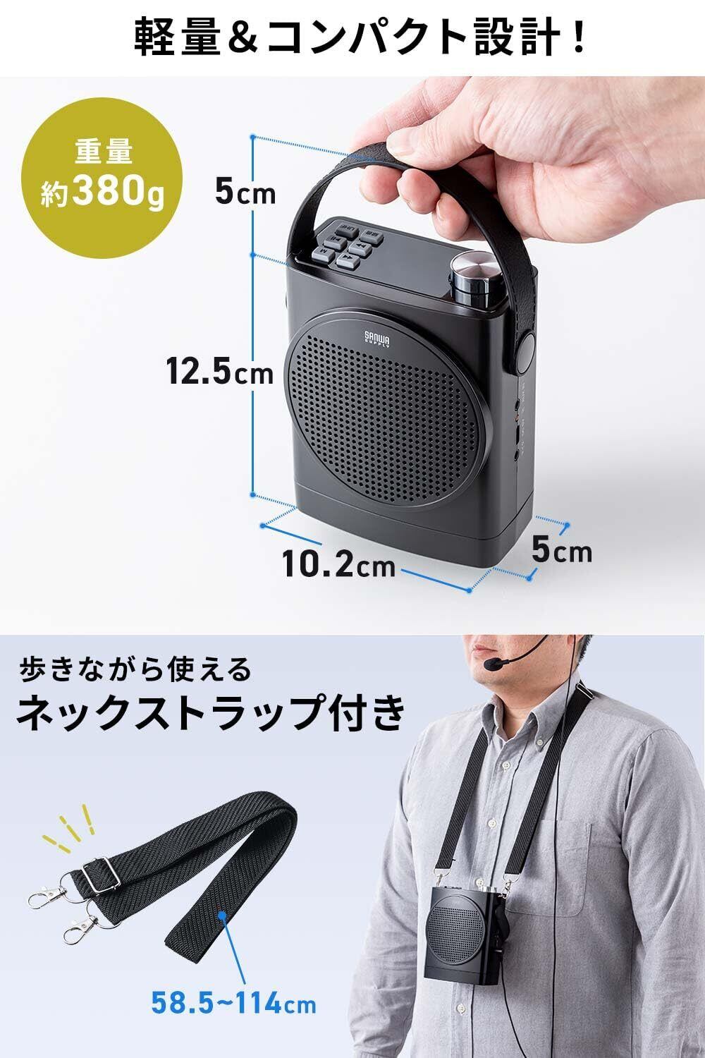 サンワダイレクト 拡声器 ハンズフリー ワイヤレス 有線マイク 高出力30W 小型 ポータブル拡声器 ハンズフリー拡声器 400-SP115