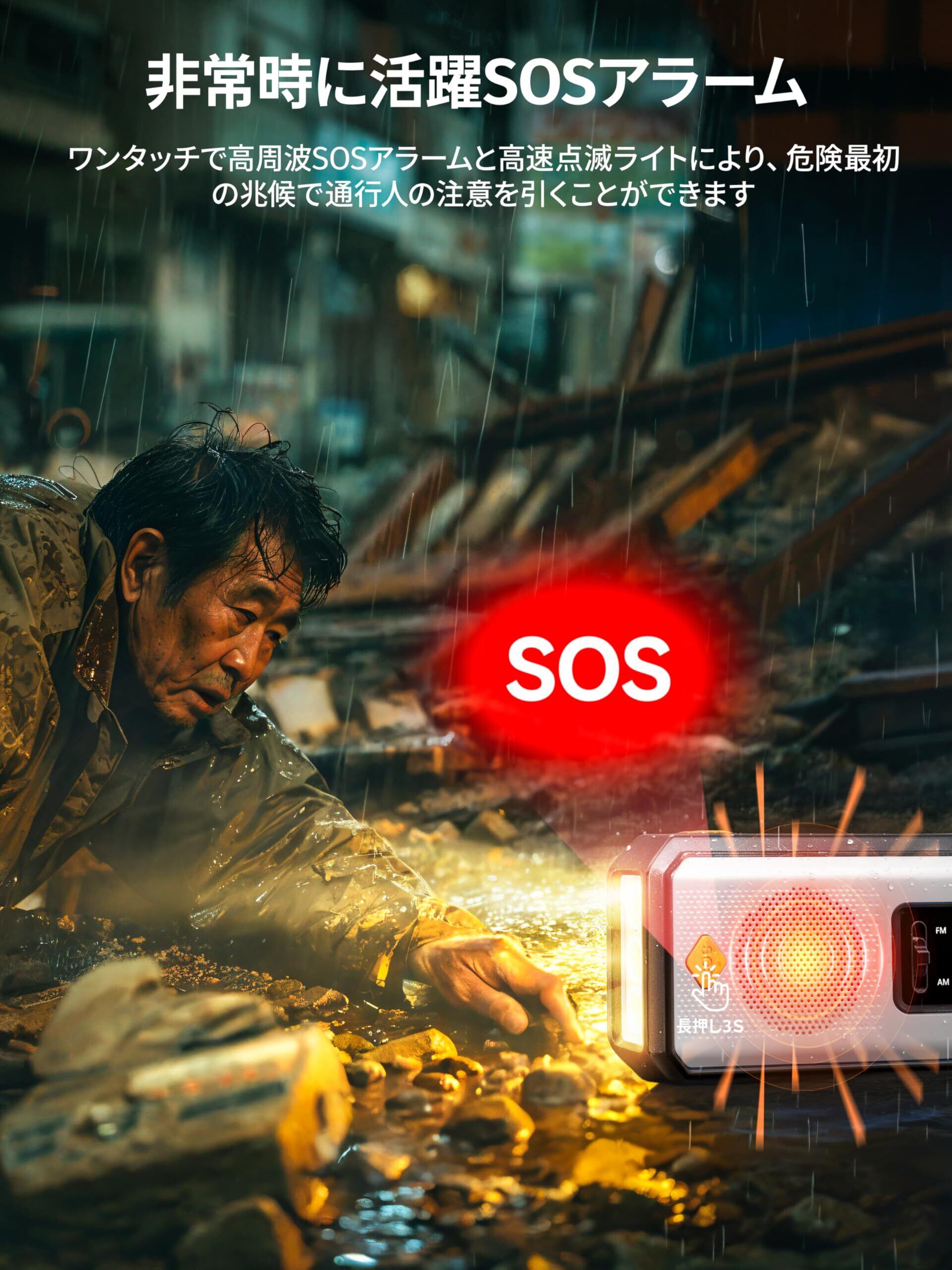 特徴 AMアンテナ内蔵, SOSアラーム, ポータブル, 懐中電灯内蔵, 軽量