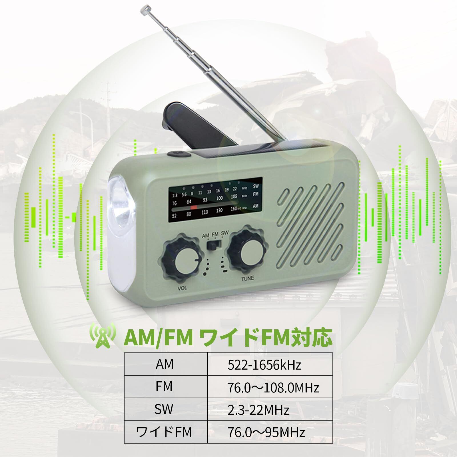 【FM/AMラジオ高感度受信の防災ラジオ】防災ラジオとして普段のラジオ鑑賞はもちろん、災害時の情報収集に役立つ!ラジオはAM/FMはもちろんワイドFM(※)にも対応しています。FM/AMラジオ(FM:76~108MHz、AM:522-1656KHz)に合わせることが出来ます。ワイドFMとは、AM放送局の放送エリアにおいて、難聴対策や災害対策のために従来のFM放送用の周波数(76~90MHz)に加え新たに割当てられた周波数(90.1~95MHz)を用いてAM番組を放送します。緊急時には、台風や地震、津波が発生しているときに、一番大切の現状把握と情報確保一番大切なのは、現状把握と情報確保ですので、ラジオ機能はかかせません。アンテナを伸ばす事により、電波をより受信しやく、調整する事が可能です。