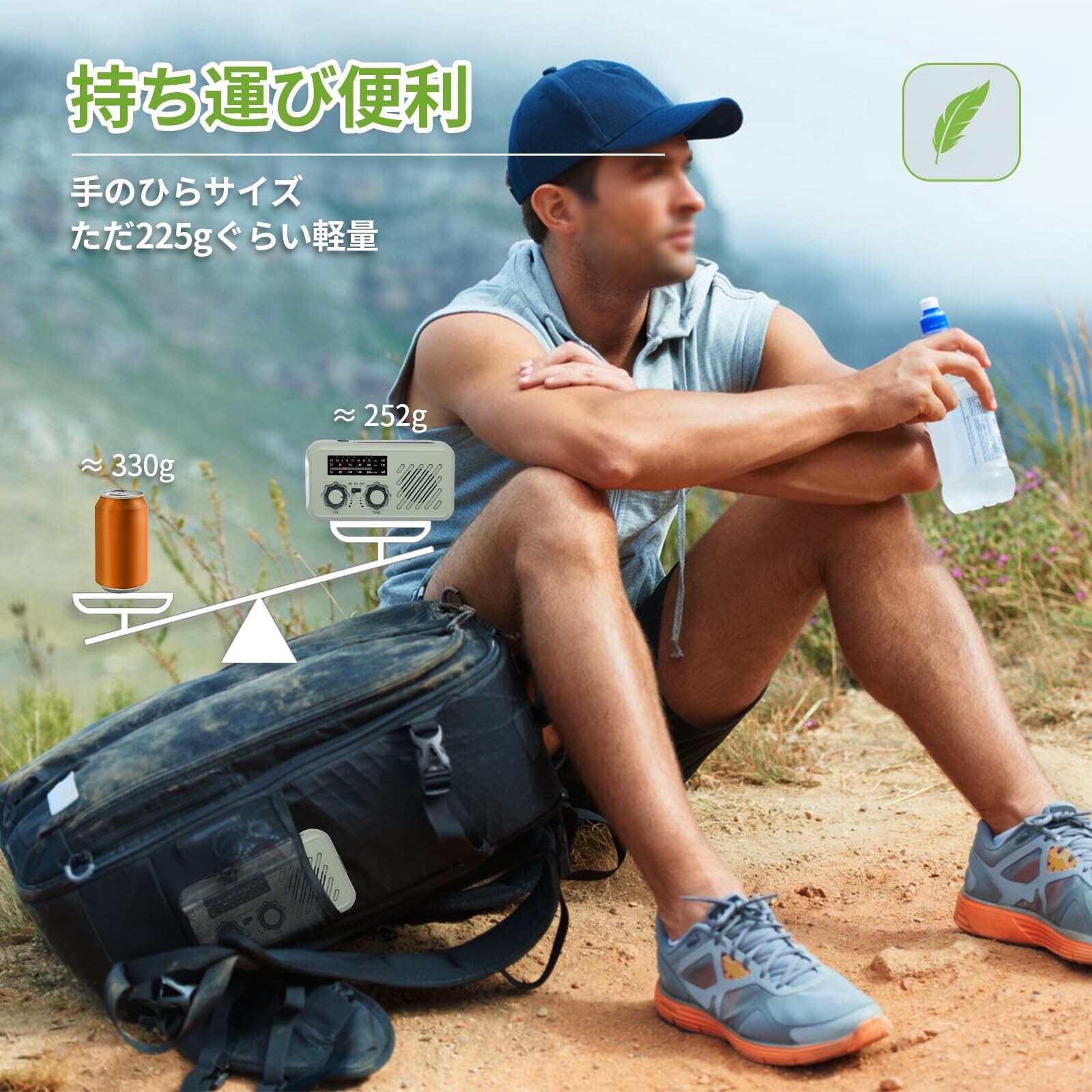 【コンパクト・軽量、携帯性が最高】GF-SOR2は軽くて手に持ったときにフィット感のある超軽量250gの小型の多機能ラジオです。ラジオ機能だけでなく、ライトやモバイルバッテリーなどの付属機能が充実した商品です。コンパクト、軽量の仕様で持ち運びしやすく、ストラップ付き設計して持ち運びに便利でアウトドアでのキャンプや旅行など時に普通のラジオ音楽やニュースなどをいつでもどこでも気軽に鑑賞できます。
