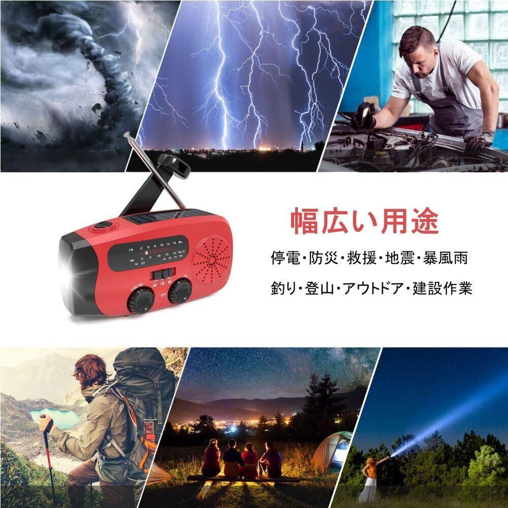 【電池残量インジケーター】バッテリー残量を4段階で表示します。バッテリー残量が一目で分かるインジケーター、電池残量を細かく把握できます。●【高輝度懐中電灯】高輝度のLEDライトを内蔵された充電式ライト、キャンプ、ハイキング、またはその他の野外活動での夜間の視認性を大幅に向上させます。●【IPX3防水】このラジオは生活防水を満たしています。(完全に水に浸さないでください)