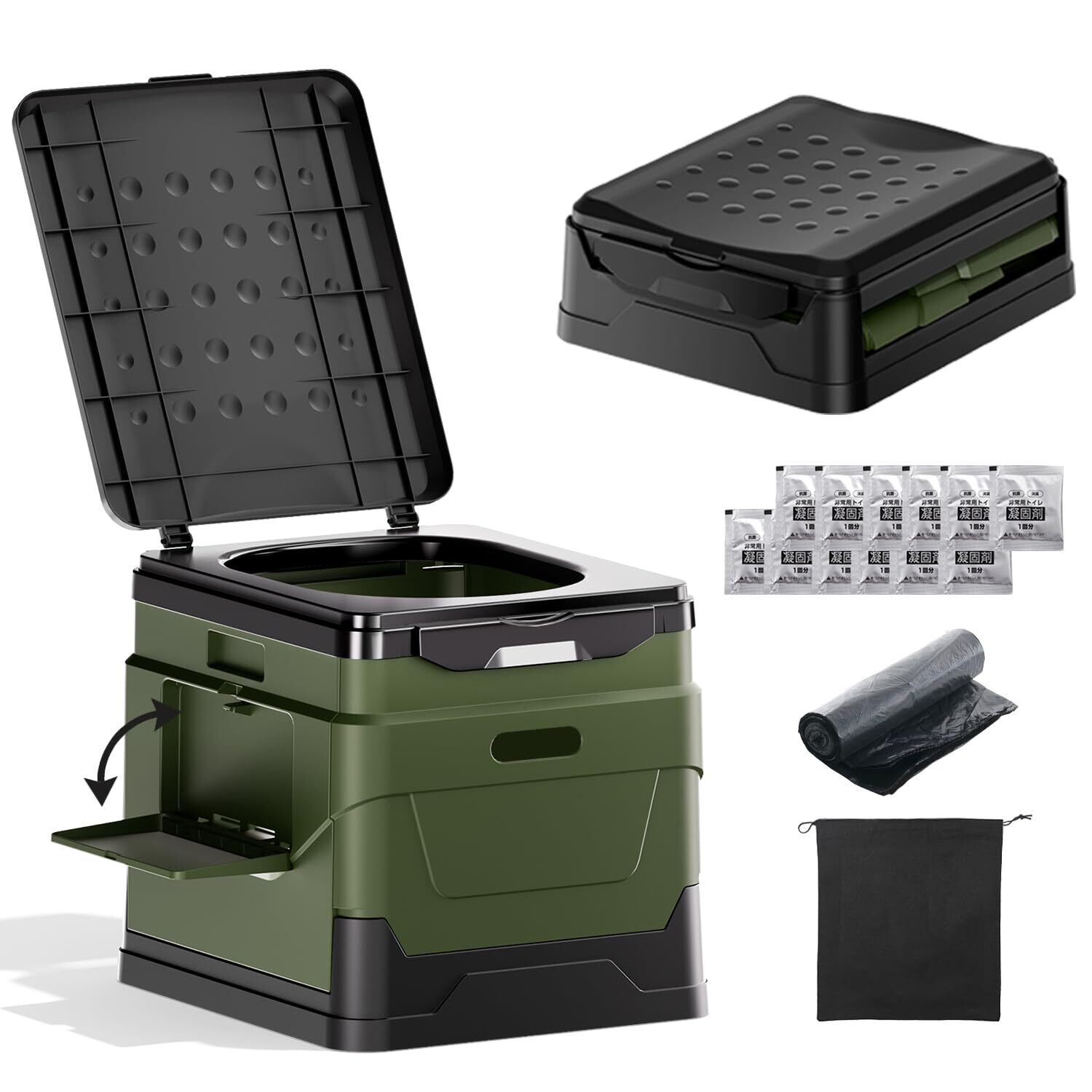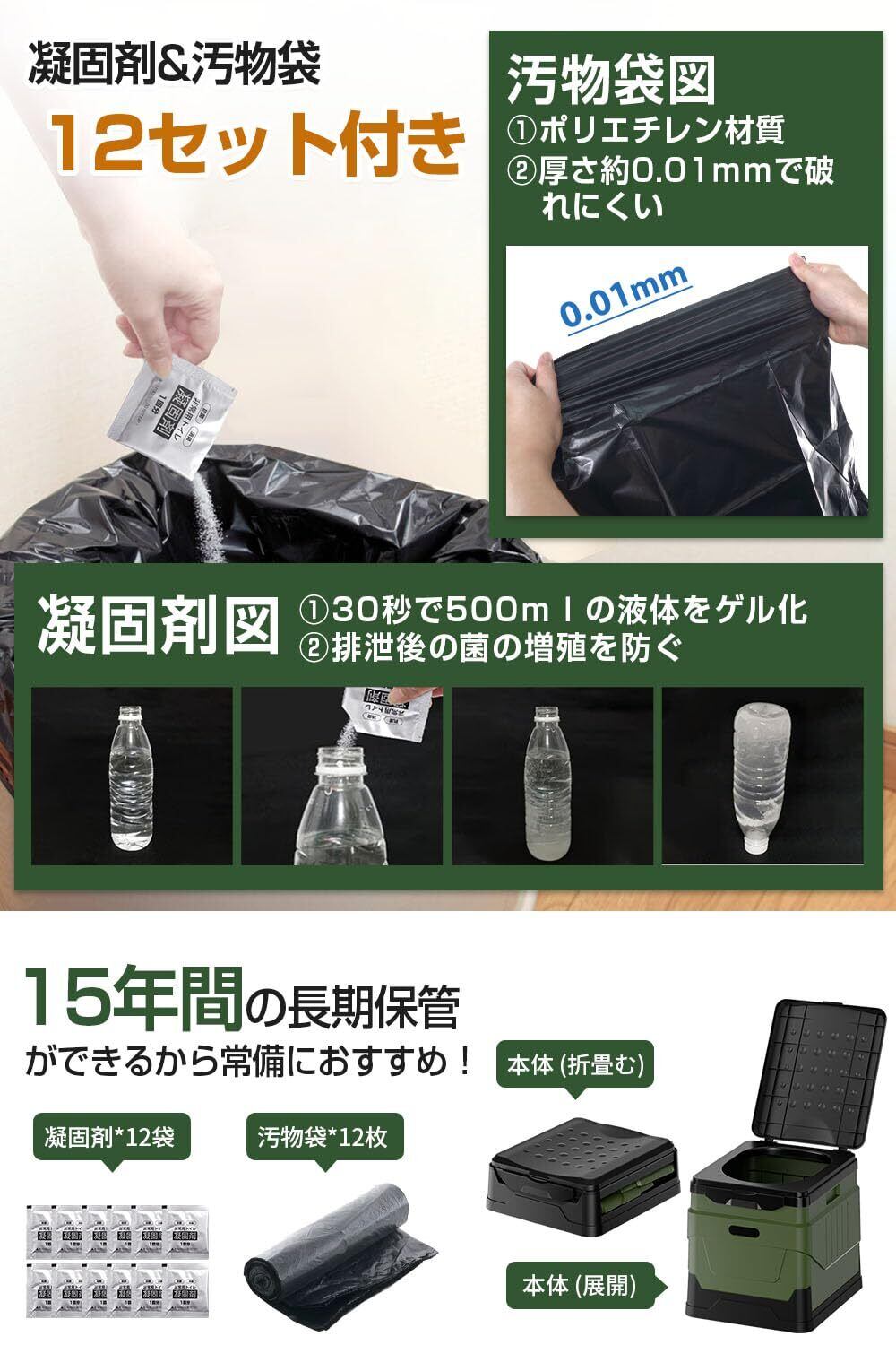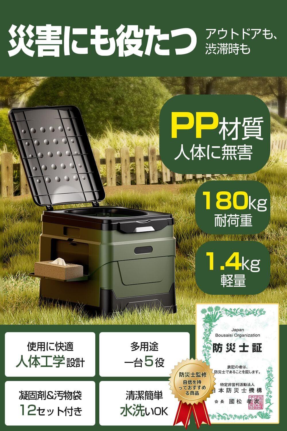 【防災士監修 & 強化型】 簡易トイレ 携帯トイレ ポータブルトイレ 非常用トイレ 防災グッズ 耐荷重180kg 持ち運び易い 組み立て簡単 多用途 一台5役 コンパクサイズ 汚物袋付きX12 防災トイレ 15年長期保管可能 地震/災害/アウトドア/台風/洪水/災害時/断水時/介護用 (ぐんりょく)
