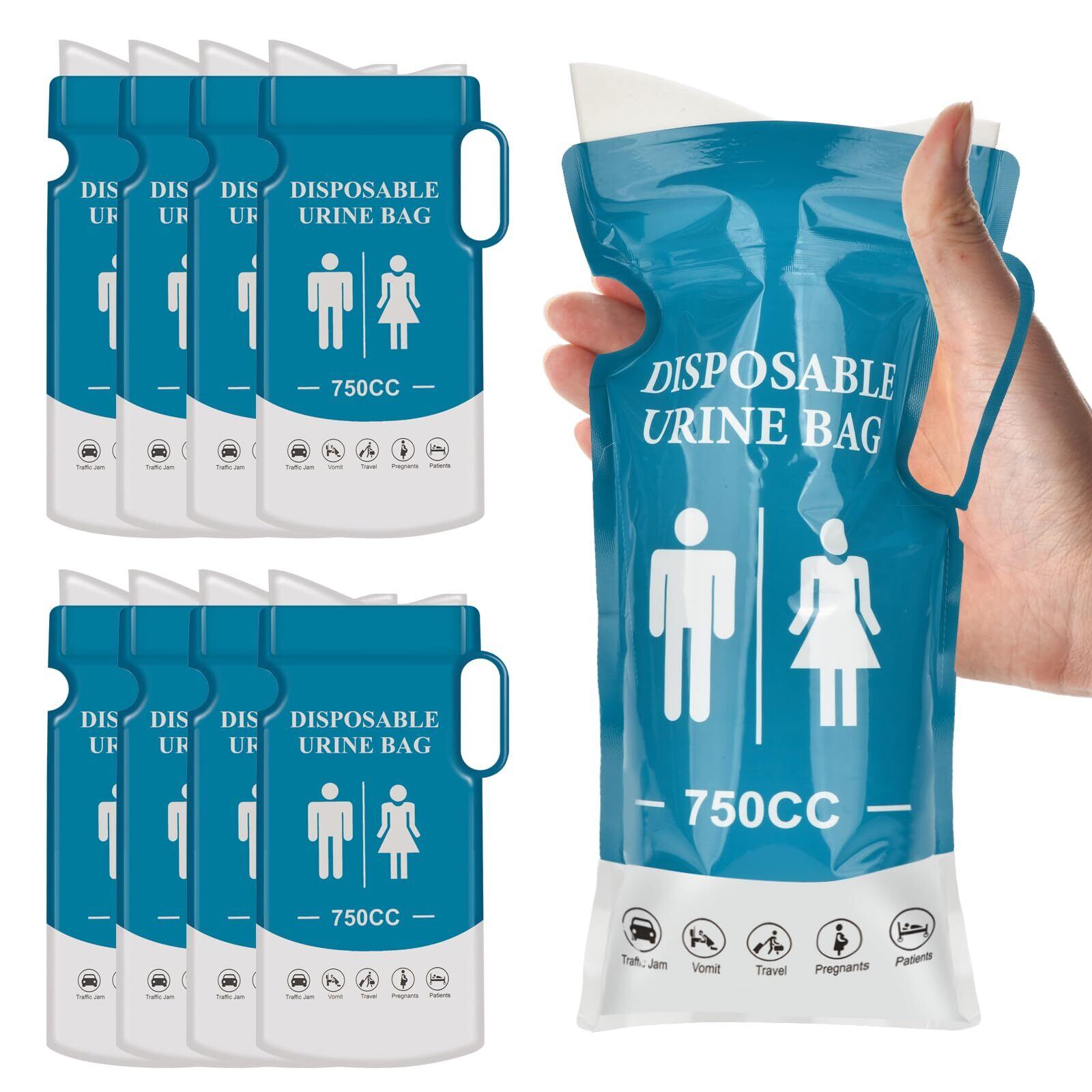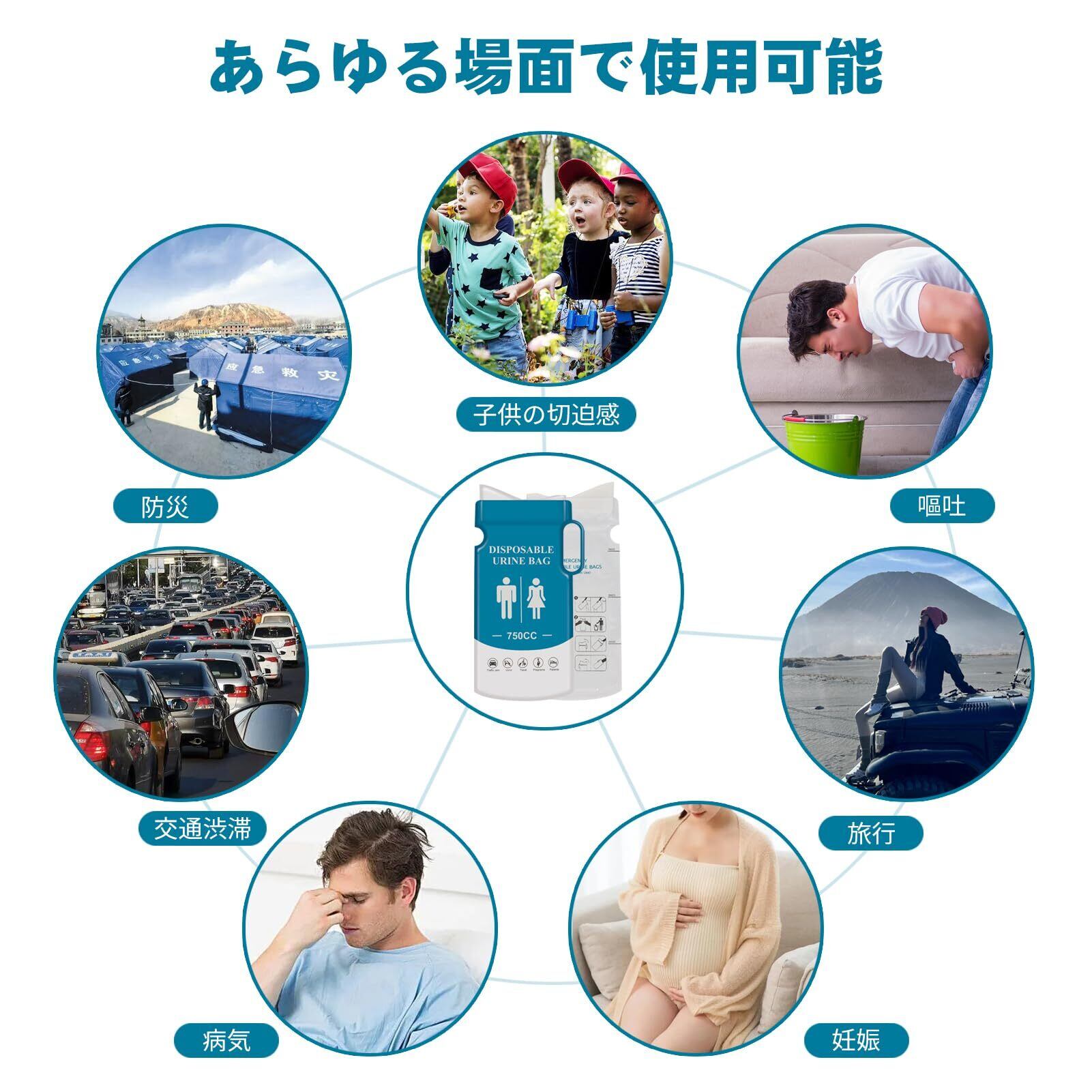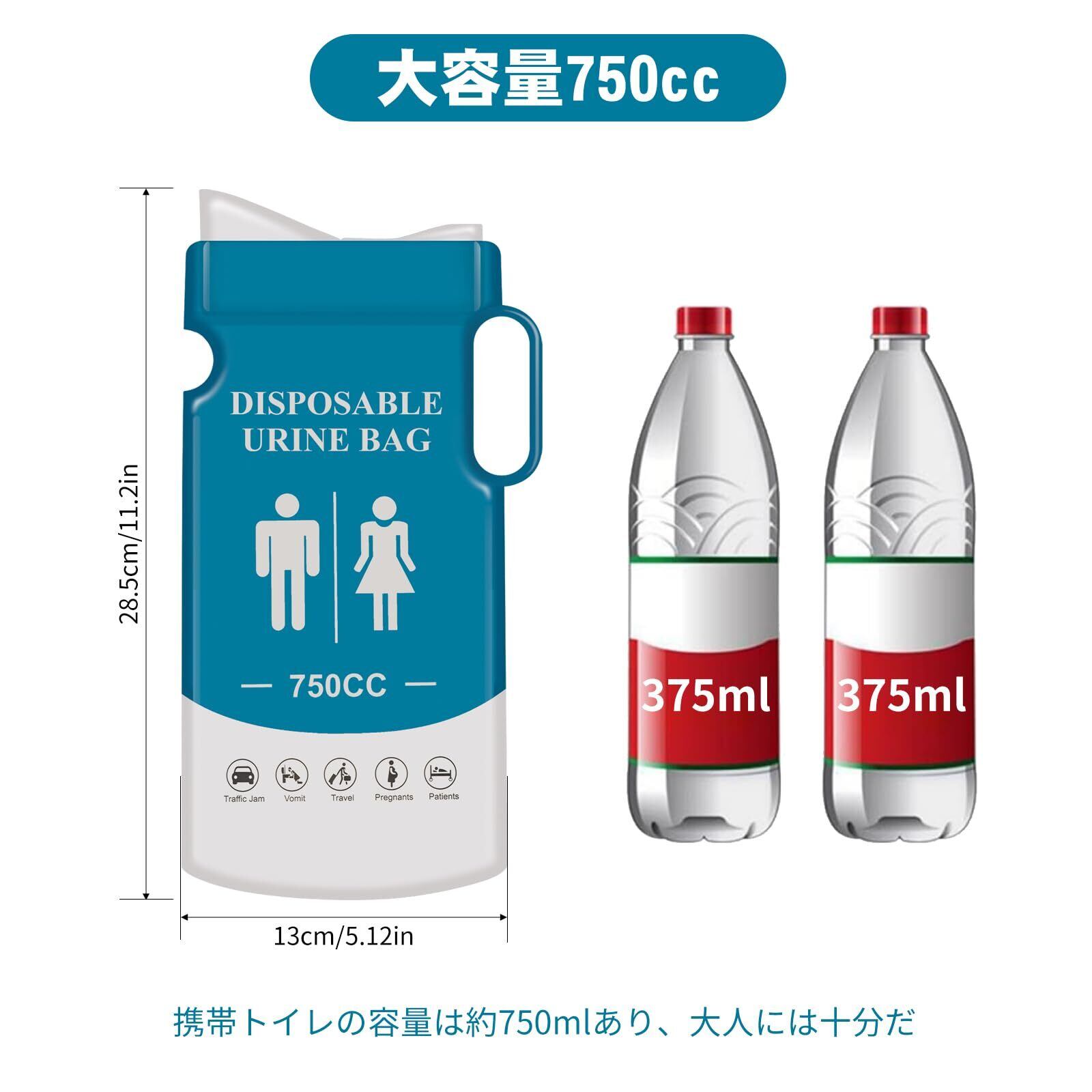 【あらゆるシーンに対応】使い捨て携帯トイレ、750mlの大容量、あらゆる年齢と性別に適しており、簡単で便利です。 人間工学に基づいたユニークな漏れ防止デザインで、ぴったりフィットし、立っても座っても使用でき、快適で心配がありません。 屋外での冒険、防災、交通渋滞、嘔吐、旅行、妊娠中、患者さんなど、あらゆる場面で信頼性の高い衛生を提供し、あらゆる経験を満足させてくれます。
