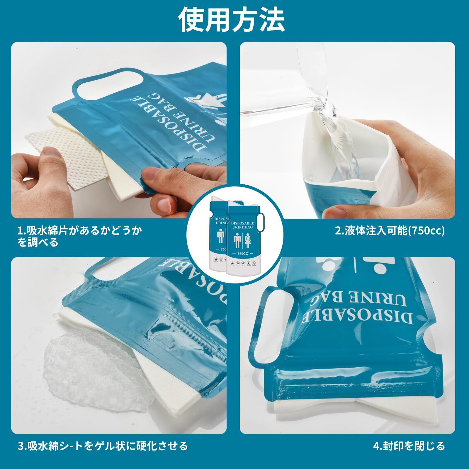携帯用緊急トイレ8個セット、各750ml大容量.大容量750mlの使い捨て携帯トイレ。 人間工学に基づいたユニークな漏れ防止デザインで、立っても座っても快適にフィットし、恥ずかしい思いをしません。 アウトドア、防災、交通渋滞、旅行など様々な緊急時のニーズに対応します。 不浸透性PE素材を採用し、シーリングバックルデザインで、効果的に液漏れを防ぎます。 独自の凝固技術により、25~40秒以内に液体を素早く凝固させ、臭いを抑制します。 吸水凝固シートは抗菌機能があり、安全で無臭の使用をします。 片手で持ち上げられるコンパクト設計。 スリムで車のサイドポケット、ポケット、財布、リュックサックに入れやすく、いつでもどこでもトイレの悩みを解決します。 ご購入後60日以内に品質問題がございましたら、お気軽にご連絡ください。