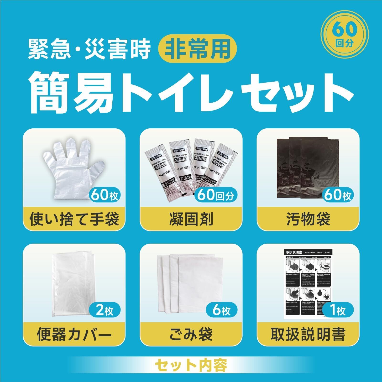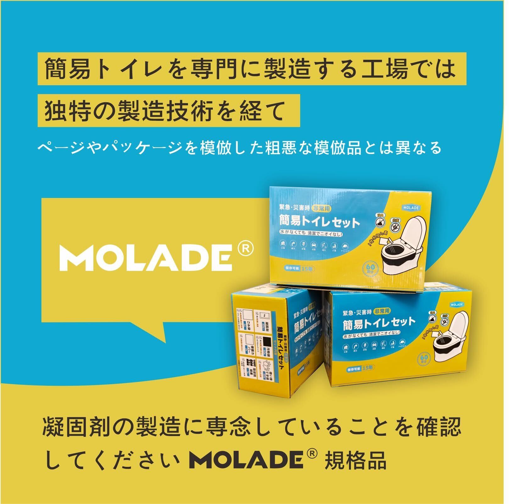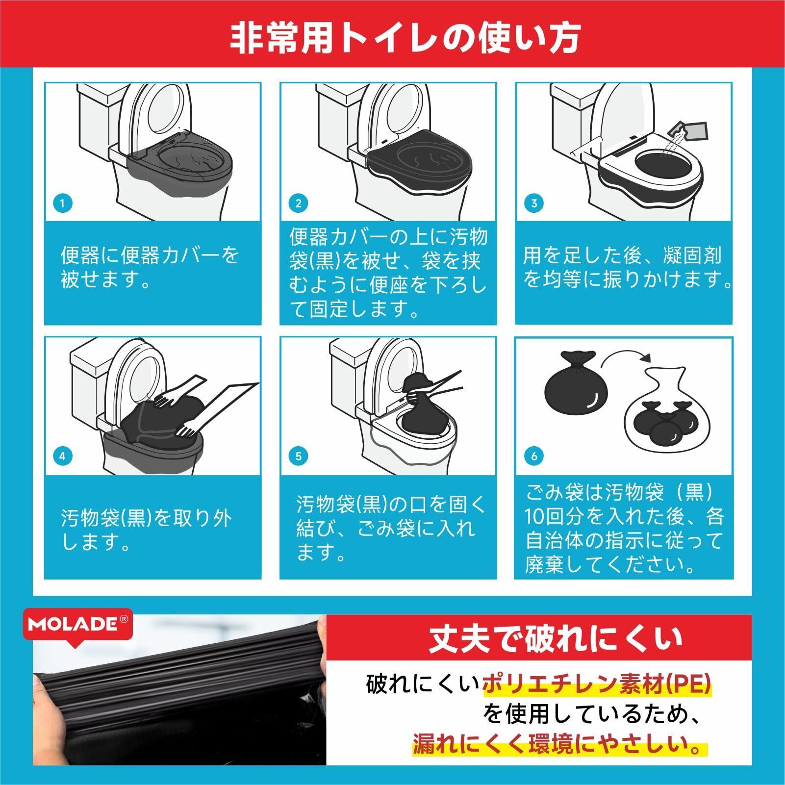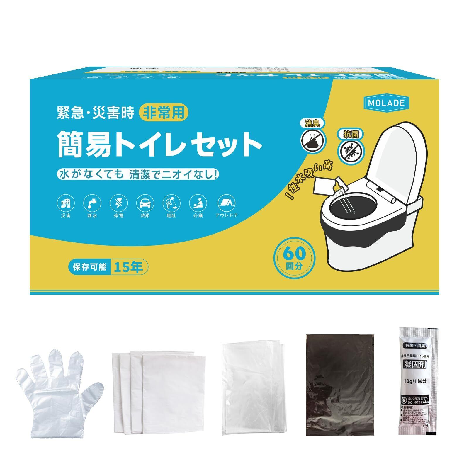 MOLADE ポータブルトイレ いつでもどこでも簡単トイレ 防災用品 防災グッズ 凝固剤 手袋 消臭袋 ゴミ袋 60回分 抗菌カバー&防災手袋付き [並行輸入品]