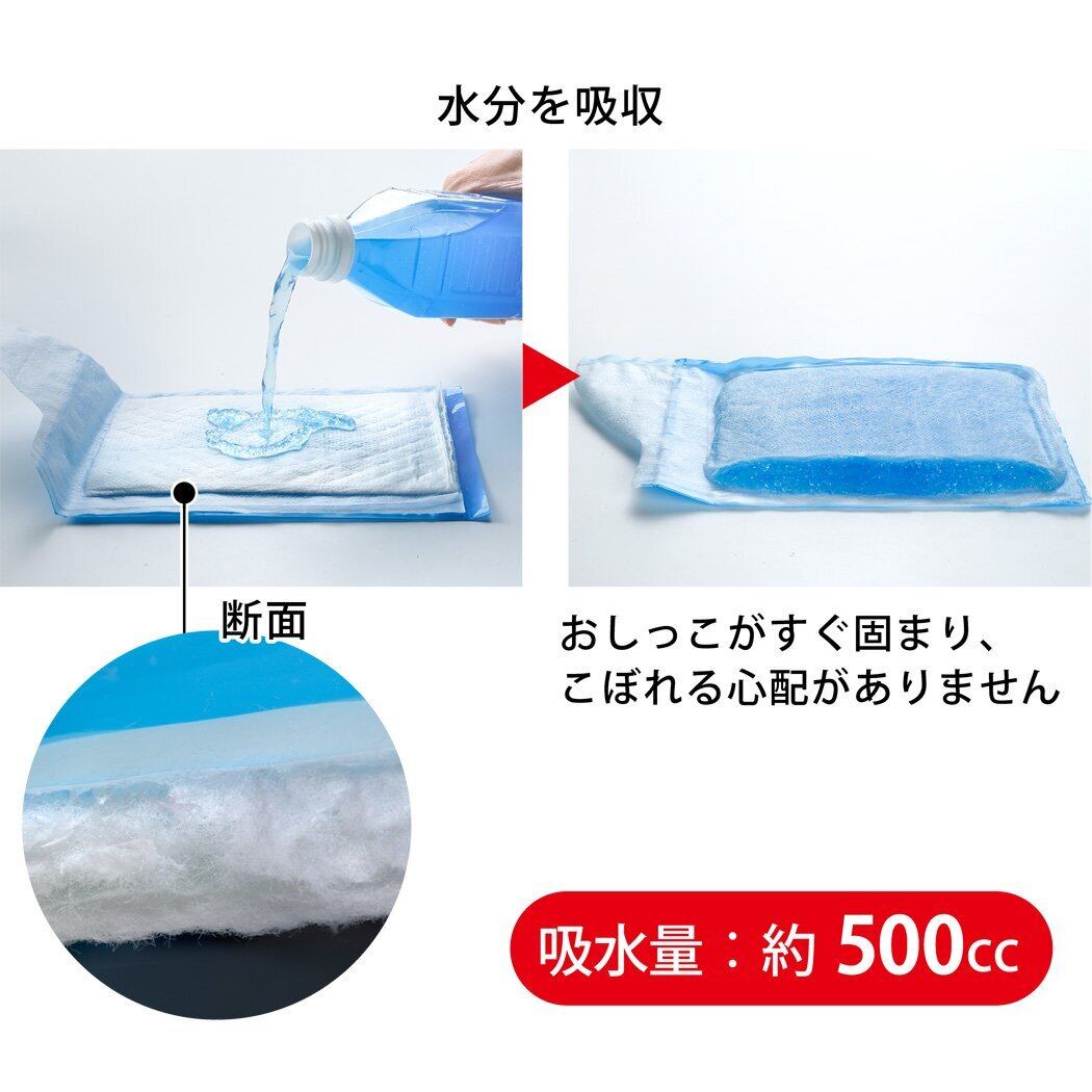 本体に直接吸水機能を付けており、尿が直ぐに固まります。一度吸水したらモレない構造になっています。