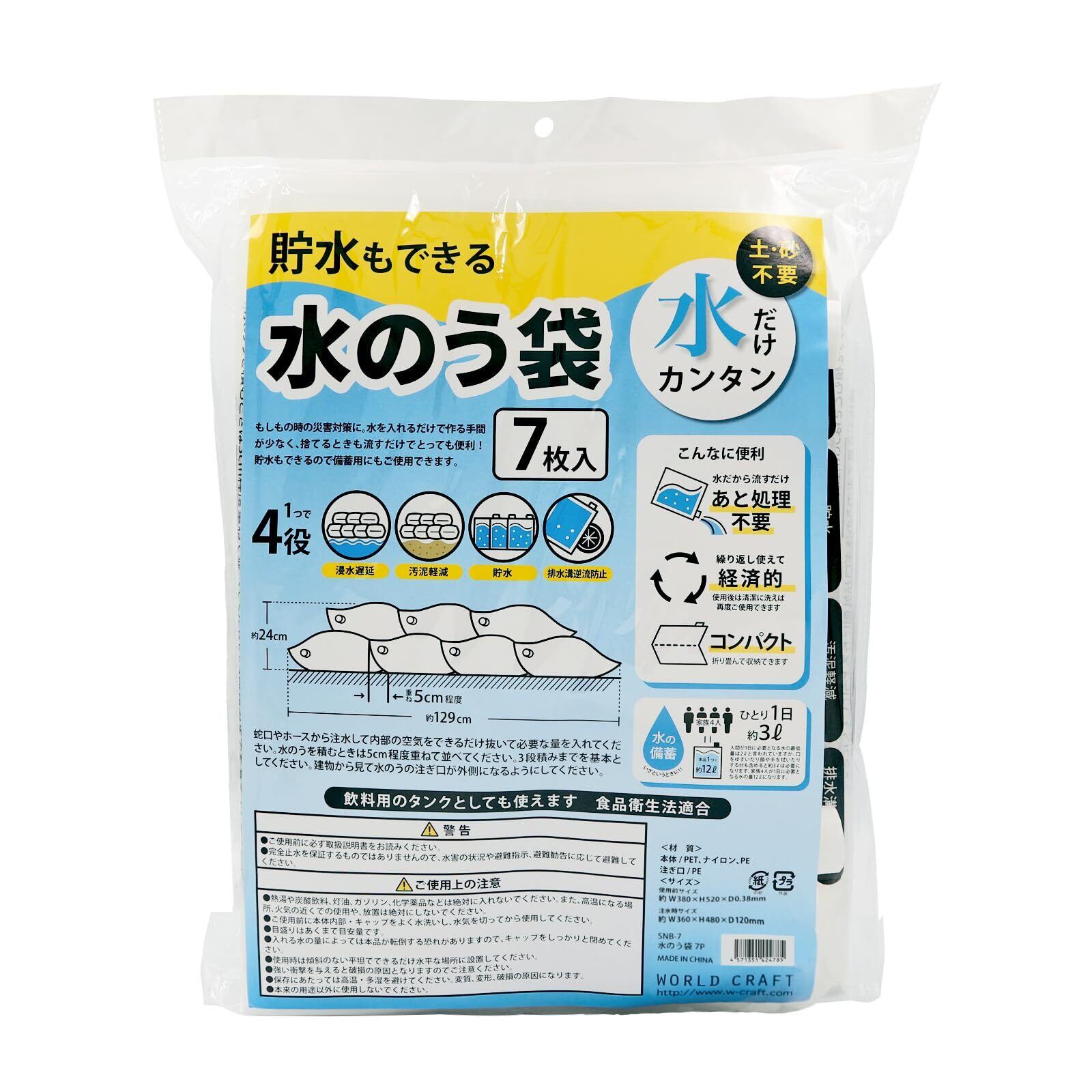 商品名:ワールドクラフト 防災用品 水のう袋 7枚入 SNB-7