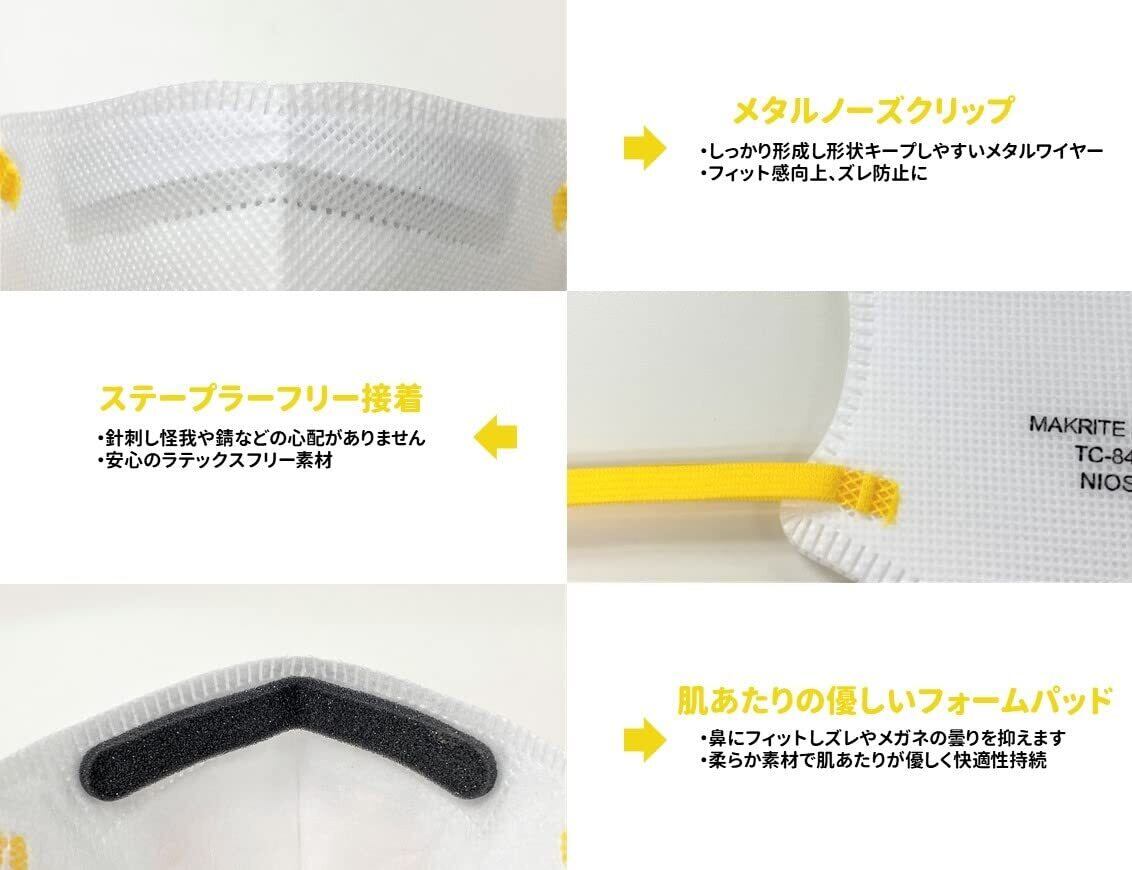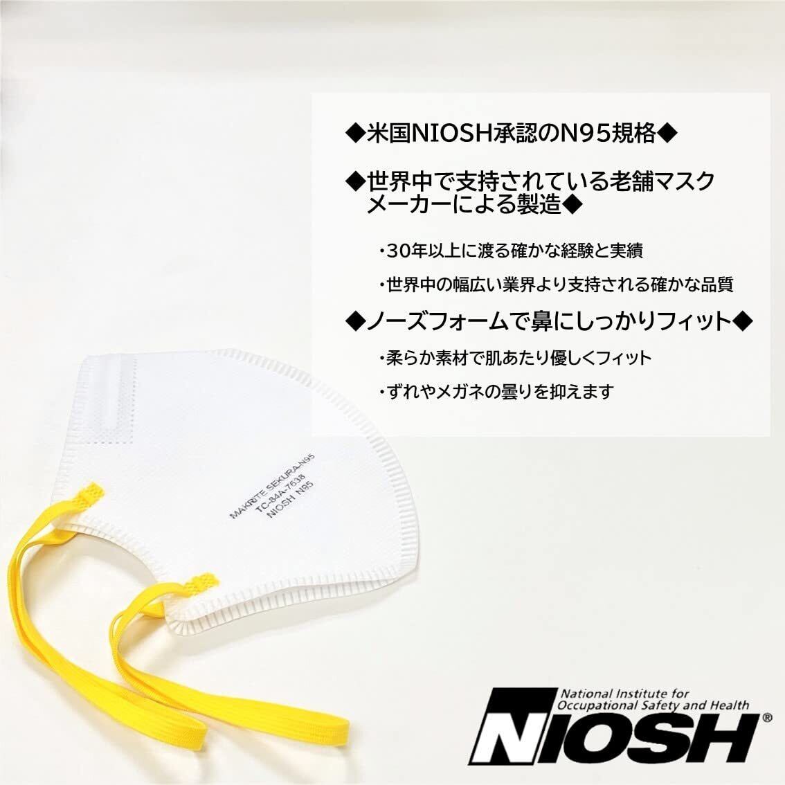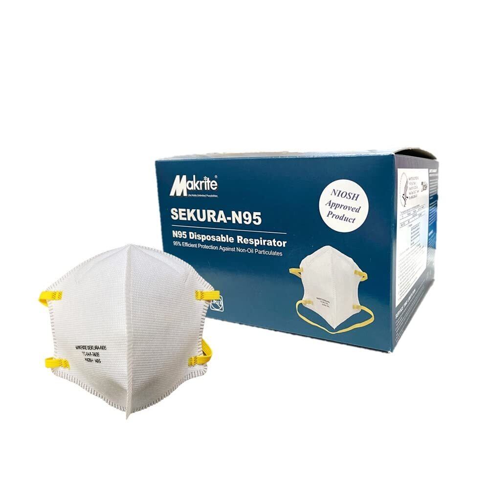 Makrite Industries N95マスク 米国NIOSH承認 SEKURA 1箱20枚 折りたたみ式 ラテックスフリー スポンジノーズパッドでぴったりフィット 頭かけタイプ